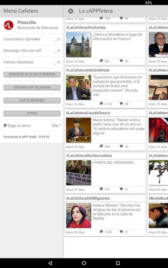 Free radio program that is possible thanks to the financing of the listeners. Become a patron, look for the option in the settings menu of the app.
