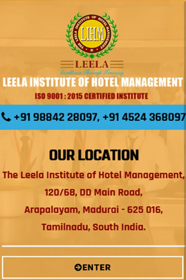 The Leela Institute of Hotel Management is an advancing institute dedicated to hospitality, education and training. LIHM strives to develop our students in a holistic manner.