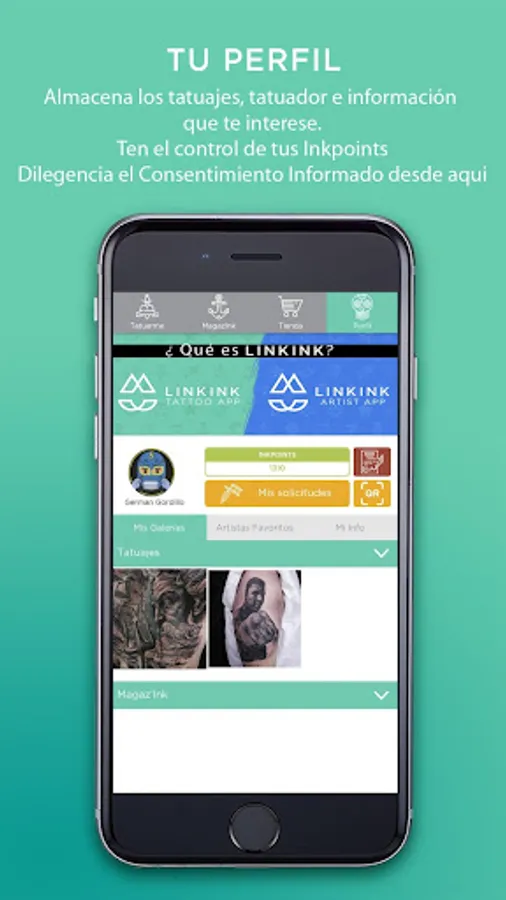 Linkink Artist is exclusive to tattoo artists who are members of the community and allows them to display their portfolio, obtain badges, receive requests from potential clients, fill out documents, obtain exclusive information and be part of Skink's loyalty plan.