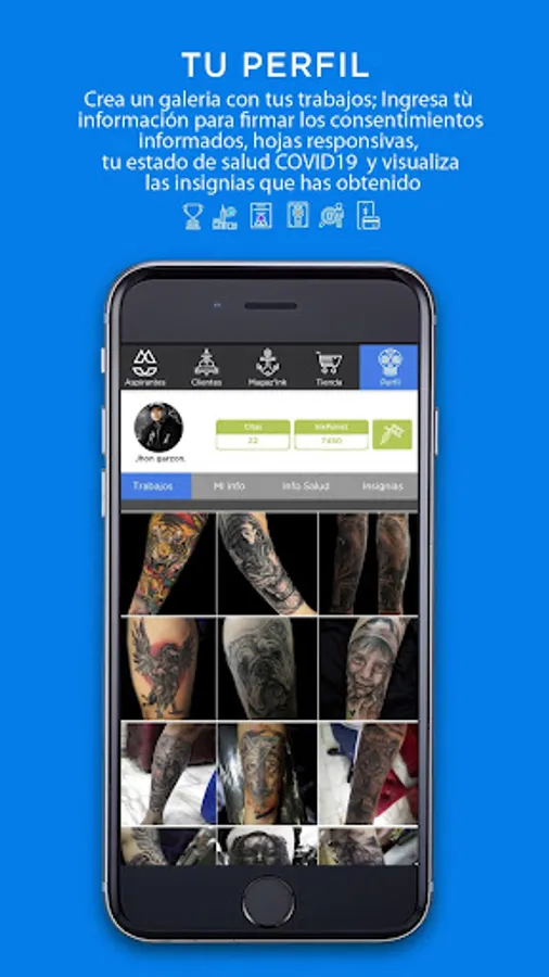 Linkink Artist is exclusive to tattoo artists who are members of the community and allows them to display their portfolio, obtain badges, receive requests from potential clients, fill out documents, obtain exclusive information and be part of Skink's loyalty plan.