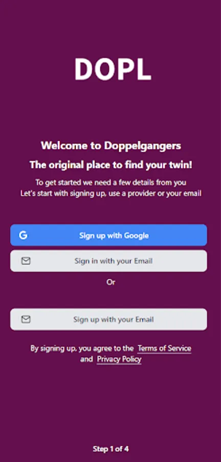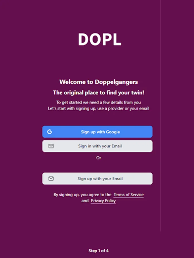 Find your Doppelganger and help others find theirs. Could you have a hidden twin out there? Sign up to find out.
