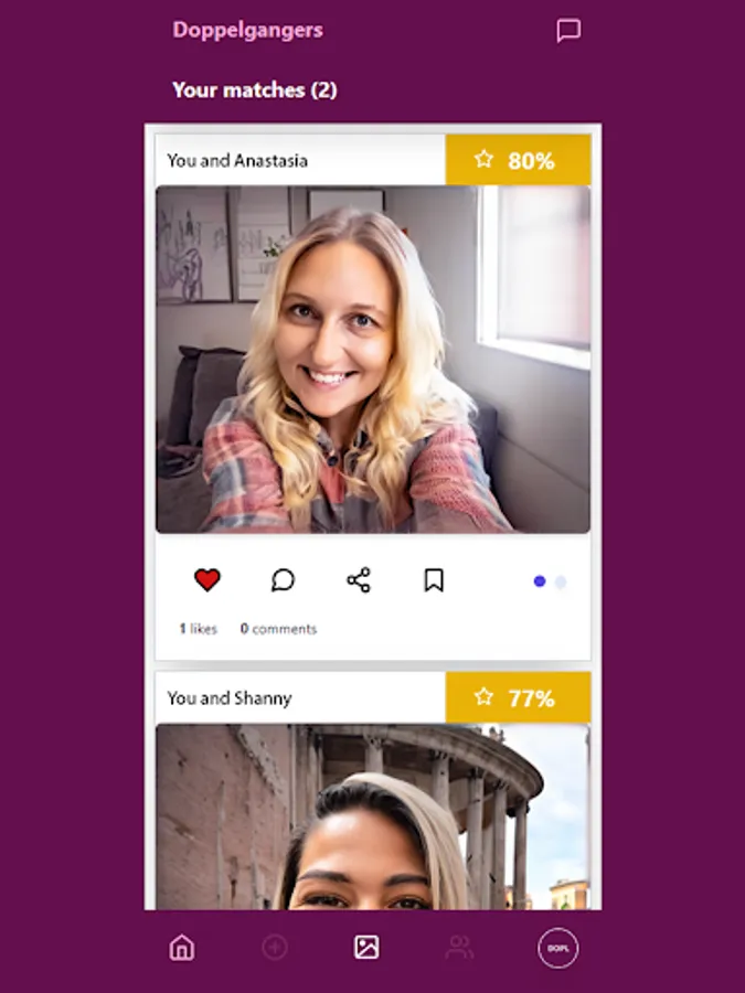 Our recognition threshold is set to 60%, this is to allow everyone to receive at least one match. The people you match with won't necessarily look like you unless you have a 85%+ match but we like to show you people who have similar features to you and anyone above 60% will have at least one of your features. For example, they might have the same nose, eyebrow ridge, cheek bones. Take a closer look, you'll see some resemblance!