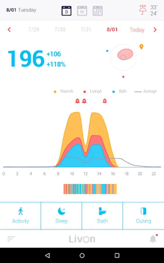 It is an application that allows you to detect the state of activity, sleep efficiency, going out, and use of the toilet by installing safety sensors in the house for the elderly or the disabled in need of care, and check the inconvenience and health status.