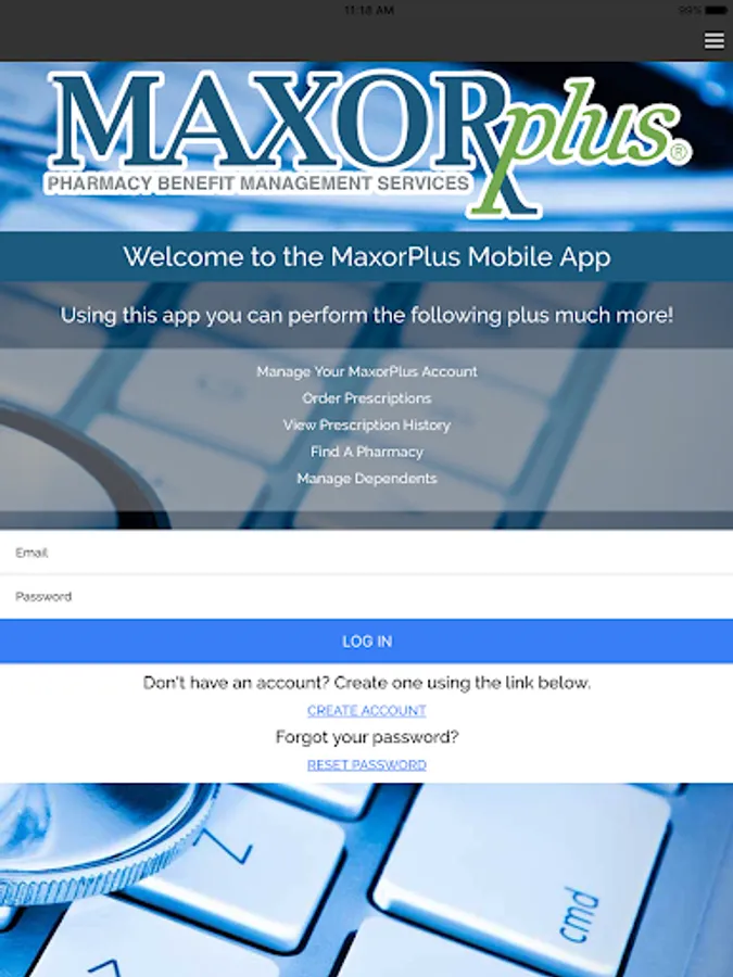 The MaxorPlus mobile app allows users to manage their MaxorPlus account. It lets users refill prescriptions and view prescription history from their handheld device. They can also update their account information, find a network pharmacy, and download benefit documents directly within the app. For users with questions about MaxorPlus services, the app allows them to browse the extensive FAQs to find any information they might need.