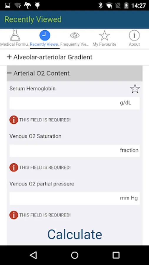 Using Medical Formulae user can get guidance for analyzing, to obtain a desired result, which may help in diagnosing the condition of the patient. rate which can be changed. Application also displays the arterial and venous saturation. P50 value denotes the partial pressure of oxygen at which hemoglobin is 50% saturated (marked in the application)