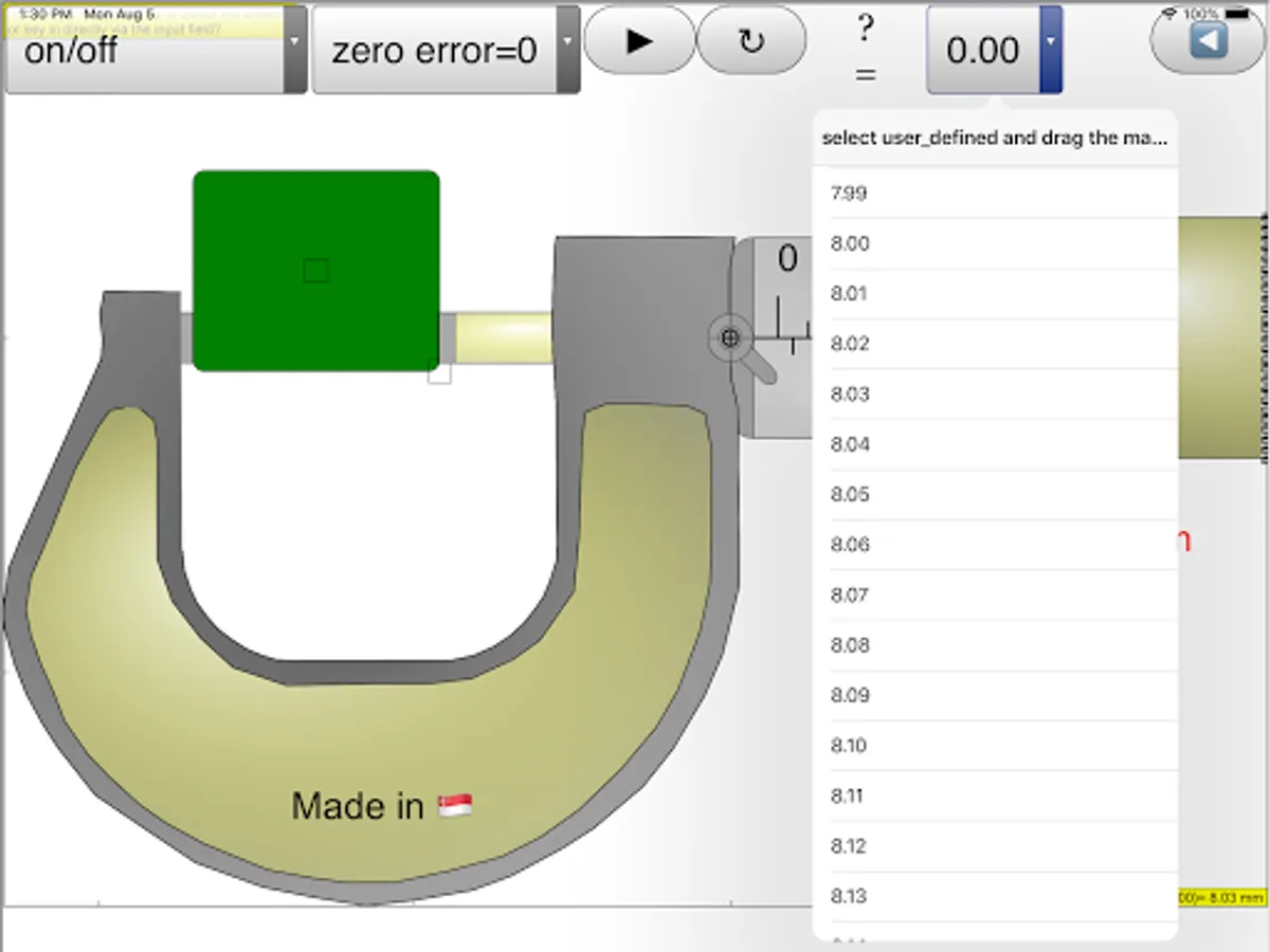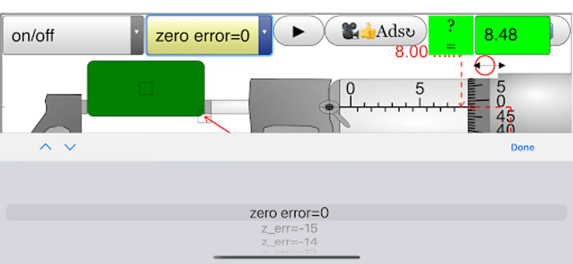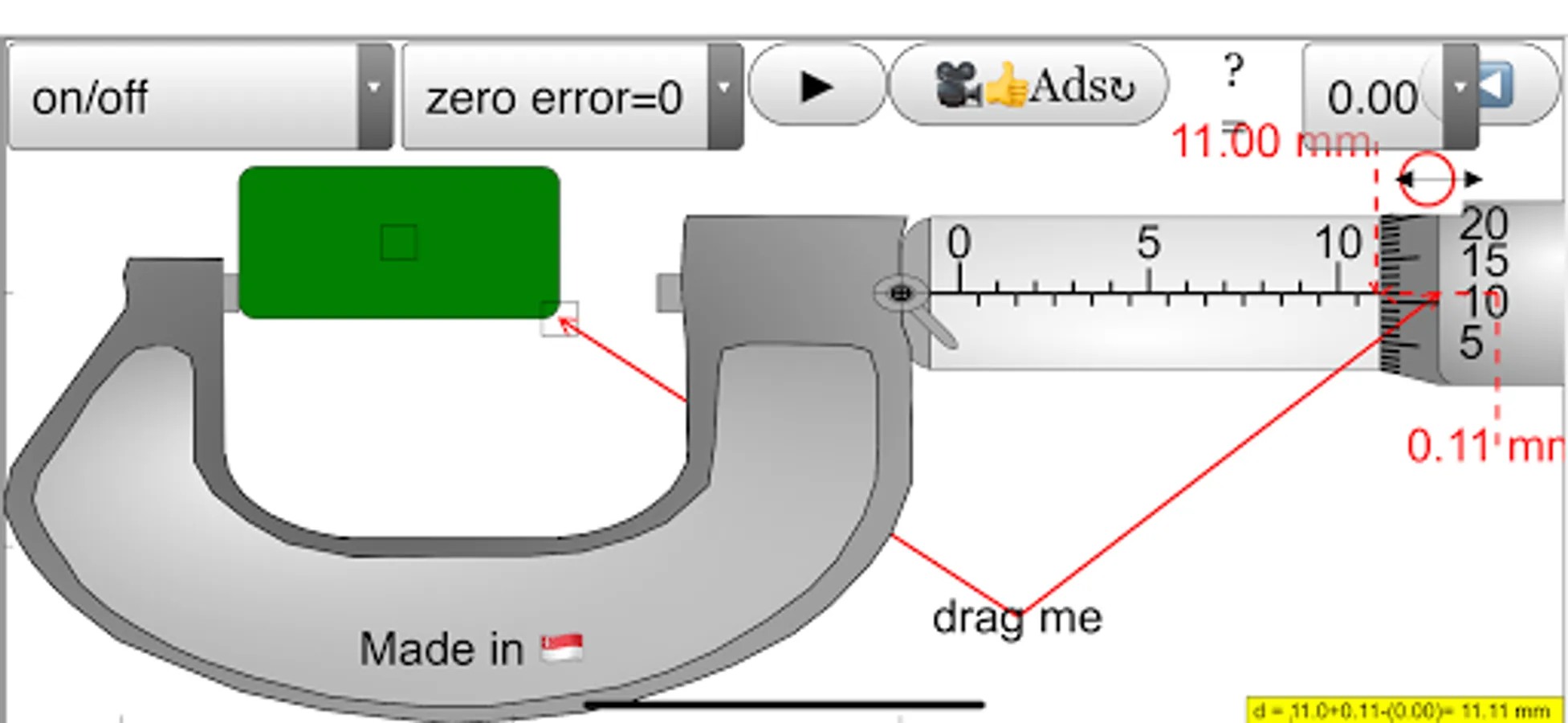 This simulation has object detection and hints targeted for O level Physics education, the zero error is also built in which many other apps do not have.