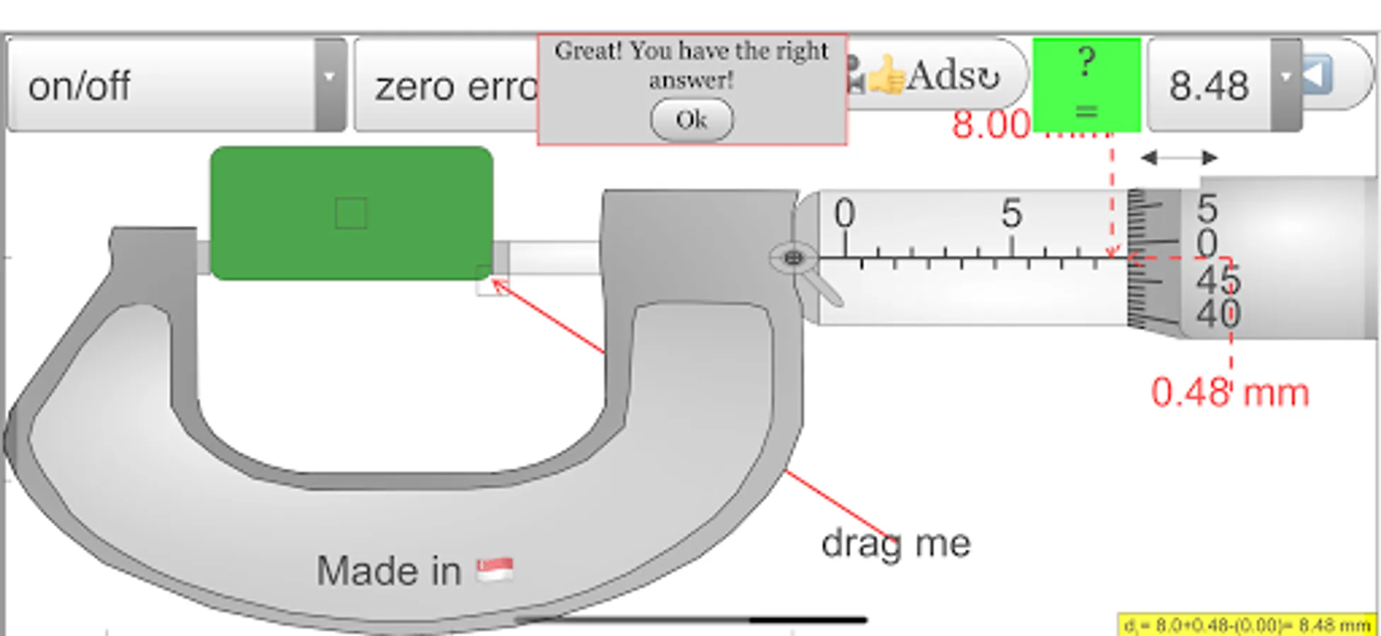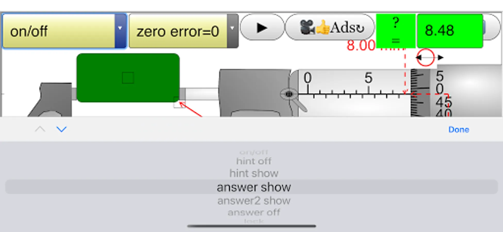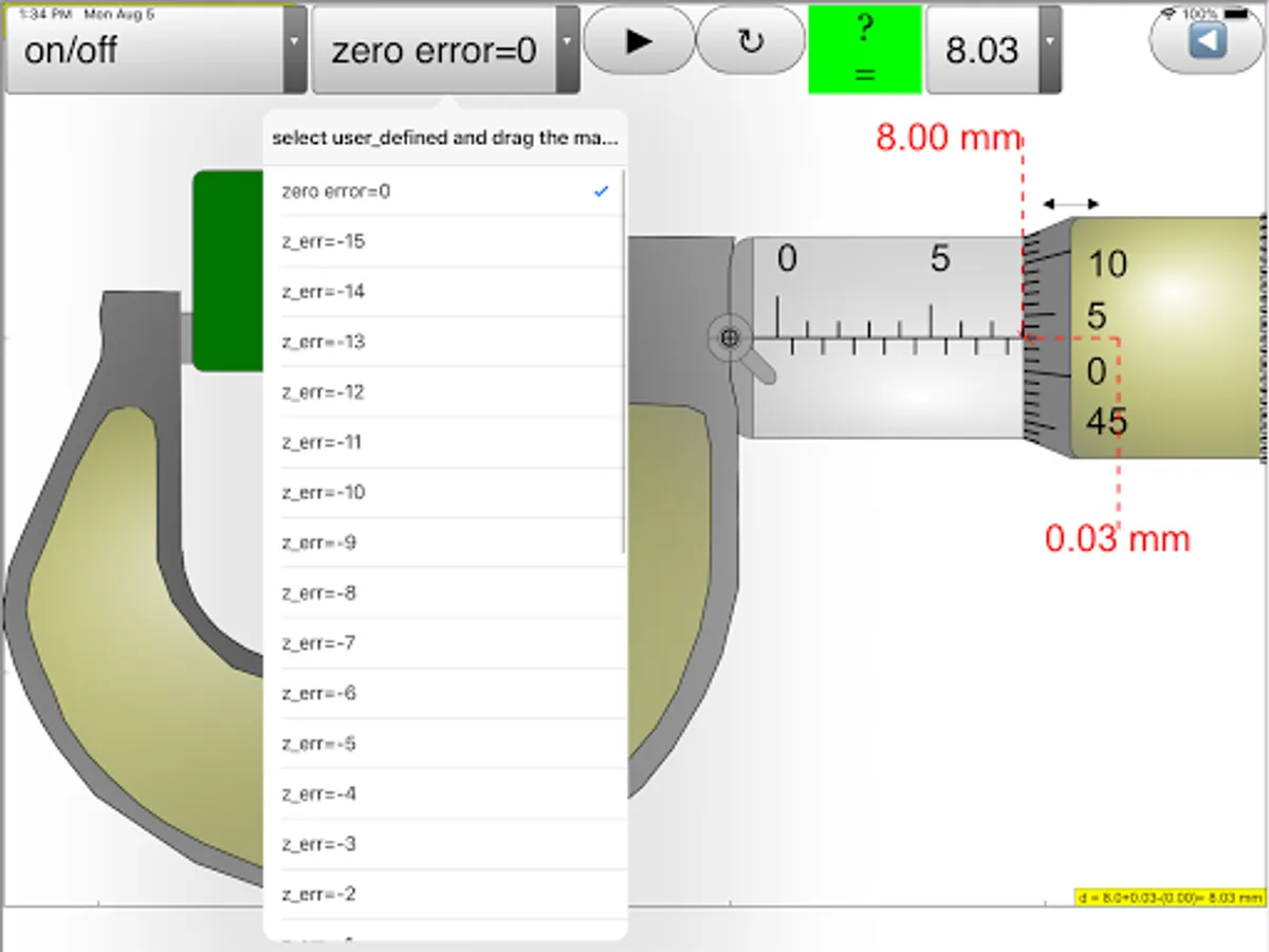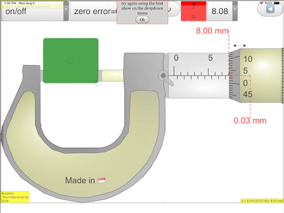 This simulation has object detection and hints targeted for O level Physics education, the zero error is also built in which many other apps do not have.