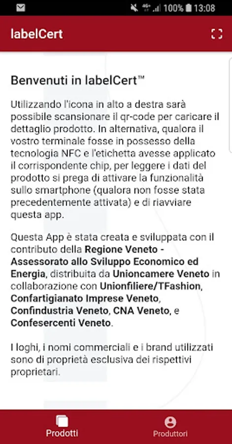 With this App is possible to scan (or tap, by mean of the NFC technology) the smart labels applied on products, to find out information regarding the same or about its manufacturer, with the advantage of being granted about originality and the "Made In" (thanks to TFashion national certification organization).