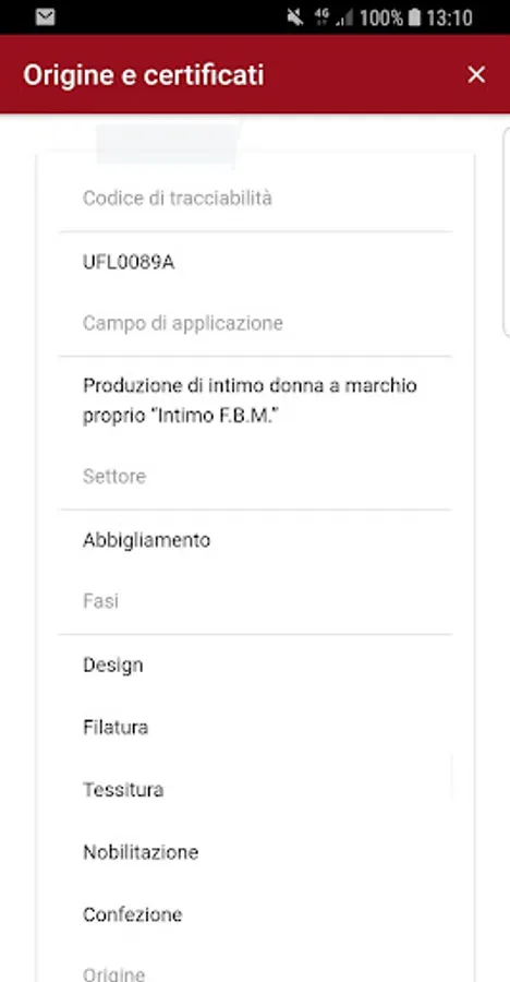 By supplying useful information to customers, this App verifies, by connecting to an official database of products, the origin and the information regarding the supply chain, and manages to check if a product is counterfeited. The origin is granted by the certification of TFashion, the official national organization created to certify products in many industries and, in particular, the supply chain and the products in the textile and fashion industries.