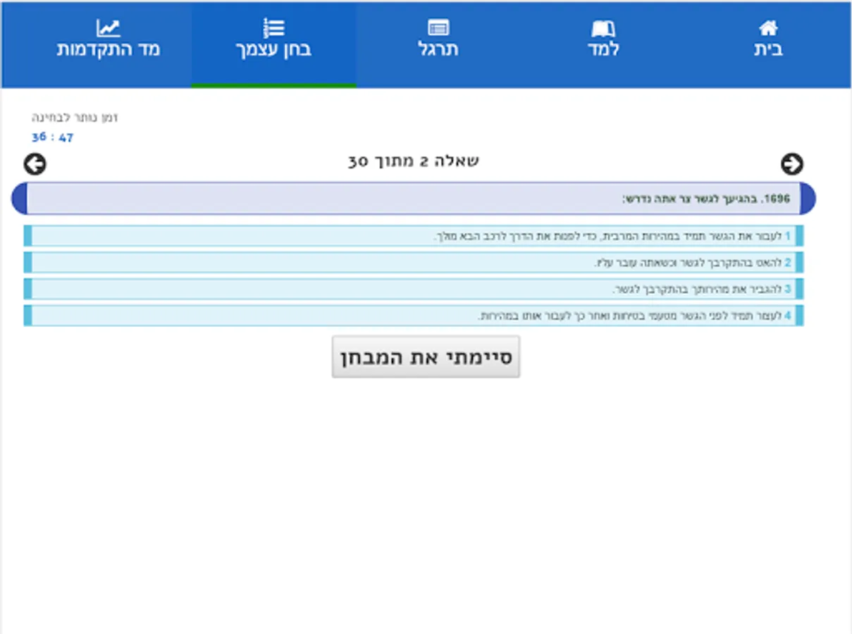 * A progress meter will show when you are ready for the exam.