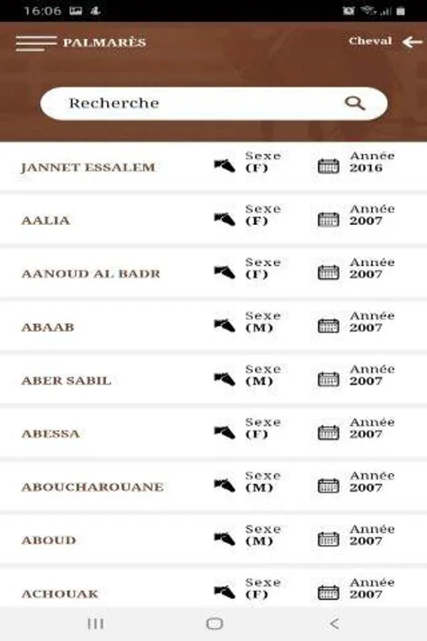 This application contains the list of Arab purebred horses born and raised in Tunisia participating in races, as well as the list of coaches, jockeys and breeders.