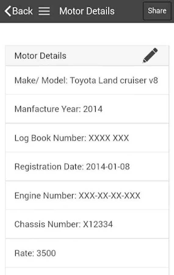 mycc is built to keep tabs on details pertaining your vehicle. The application help you to store details such as:
