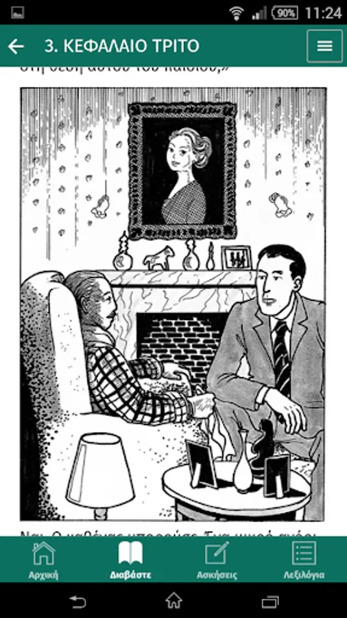 You will see the front cover of the book with the characteristic illustration of its printed version to welcome you to the app.