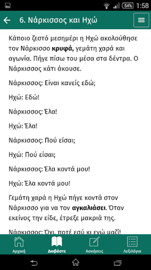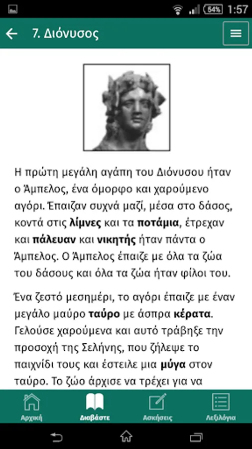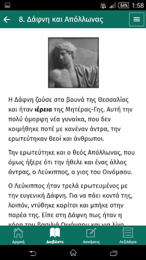 Mythology in Easy Greek Apps are language learning apps based on simplified adaptations of well known ancient myths selected from Greek mythology. They have been written by experienced Greek language teachers in the simplest possible language and are accompanied by related exercises. The apps aim at improving the learner’s reading comprehension skills and building up their vocabulary. The narratives may be read and further exploited by the learner with or without the help of a teacher or a dictionary. There are three Mythology app titles all written for learning Stage 3.