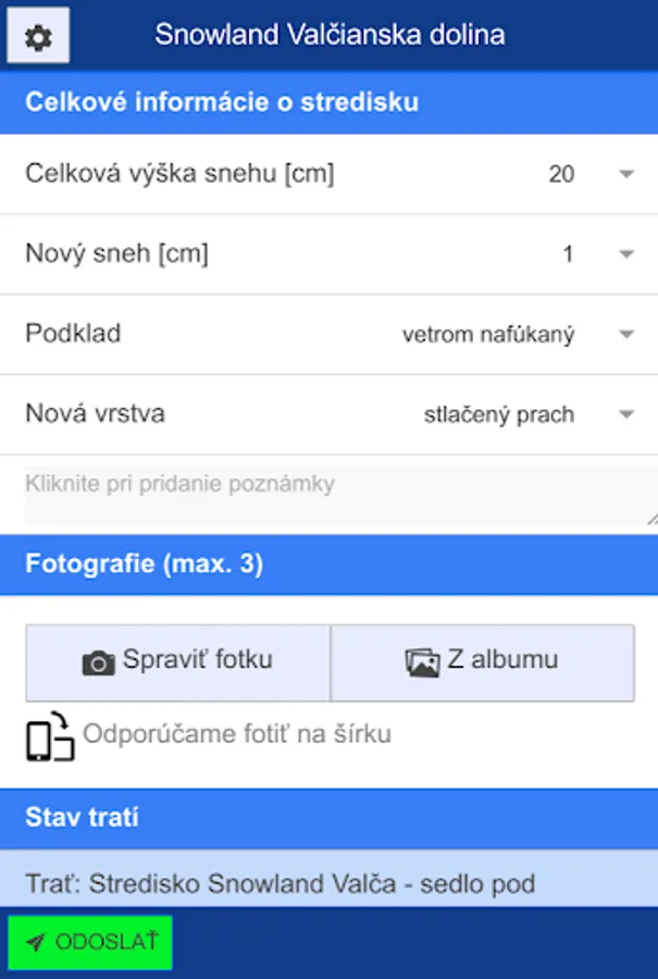 App is designed to be used by cross-country skiing resort managers to submit latest information on snow and trail conditions from their resort to nabezky.sk web portal.