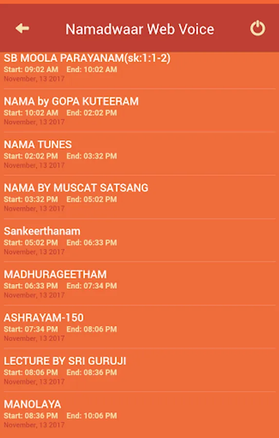 Namadwaar’s Webvoice is an online radio that keeps us in communion with Satsang all through the day. With a set schedule of HH Maharanyam Sri Sri Muralidhara Swamiji’s lectures, Madhurageethams, Lectures by disciples of Sri Sri Swamiji, Slokas, Kirtans and many enriching sections on Indian Culture and Heritage, web voice is the best company any spiritual seeker can have through their day.