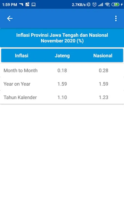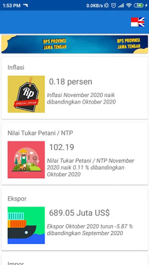 Aplikasi mobile yang berisi data-data strategis dan terkini Jawa Tengah, yang meliputi: inflasi, Nilai Tukar Petani (NTP), ekspor, impor, neraca perdagangan, pertumbuhan ekonomi, kemiskinan, gini ratio, ketenagakerjaan, dan Indeks Pembangunan Manusia (IPM).