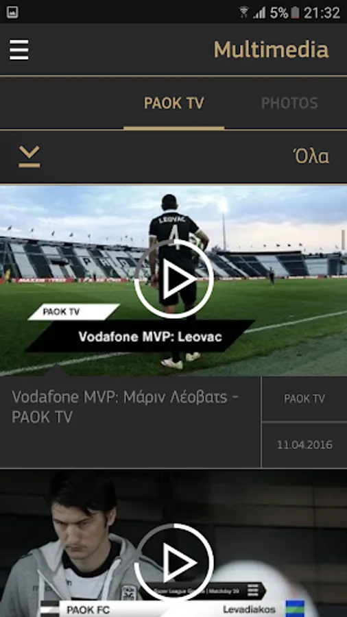 • Multimedia with videos from PAOK TV and photos from all team activities