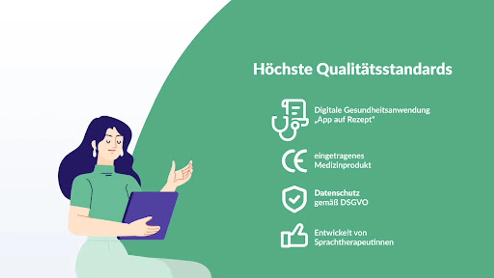 ✅ Highest quality standards: The app was specially developed for the needs of patients by a team of speech therapists and computer scientists at the Ludwig Maximilian University of Munich and is registered as a medical product.