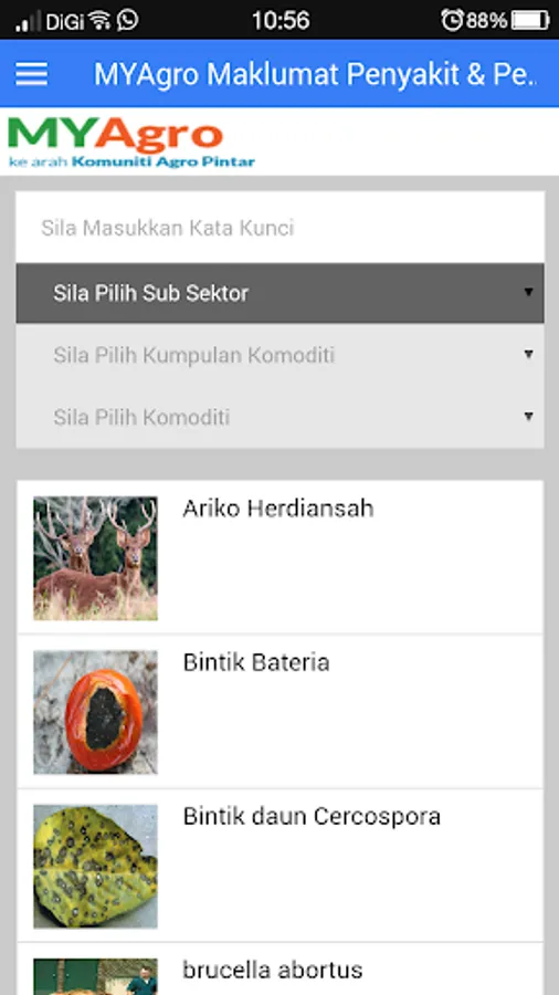 This application will provide farmers with information to manage commodity pests and diseases. Information will be categorised into commodity types that will help farmers to identify pests and diseases based on their commodities.