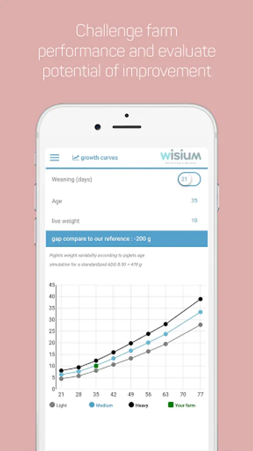 Thanks to its post-weaning growth curves modeled by Wisium, Piglet Pocket enables you to challenge farm performance and evaluate the potential of improvement.