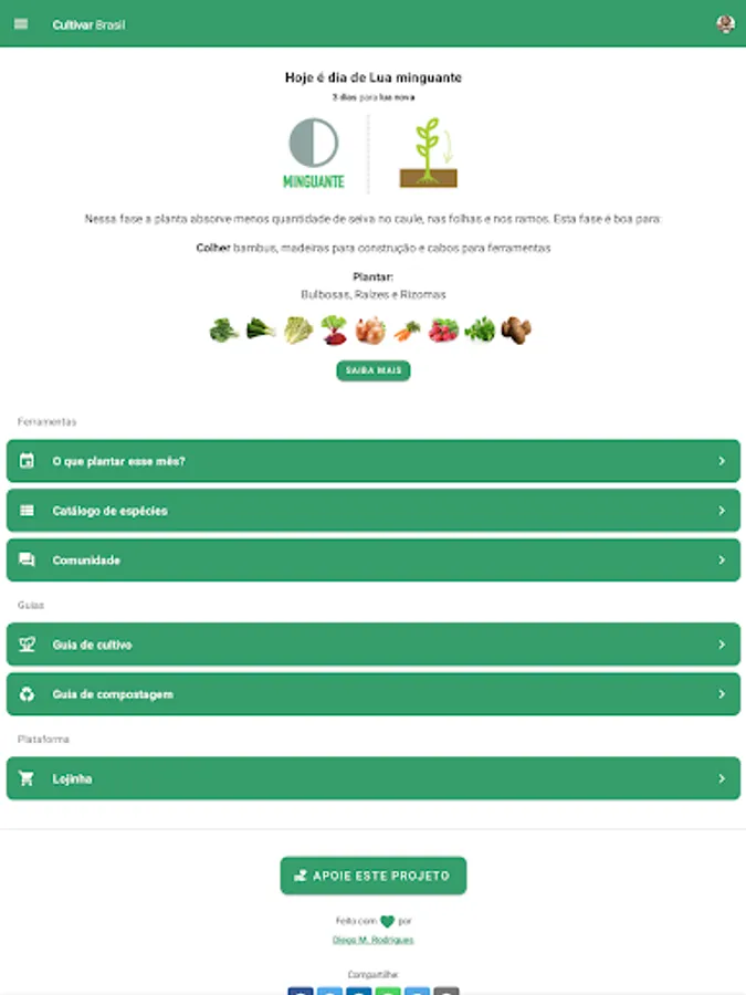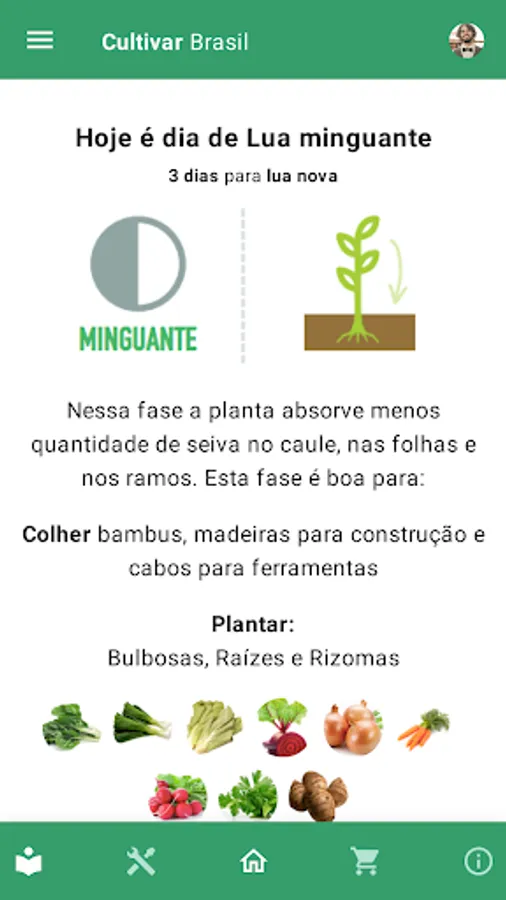π Phases of the Moon: Discover the best action of the day, such as planting, harvesting or pruning, according to the phases of the moon.