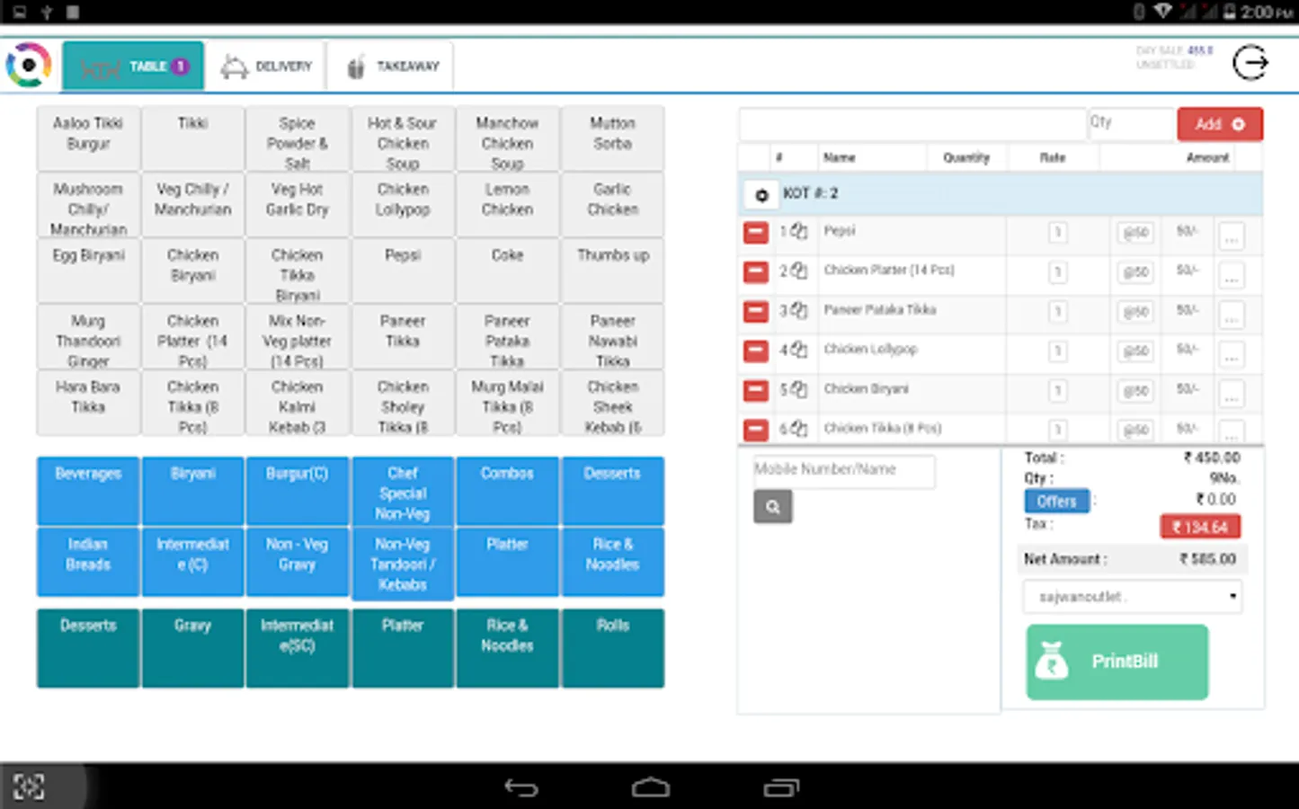 Independent app for lite version of Posist application of billing. This app can work independently integrated with major Bluetooth printer.