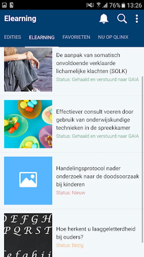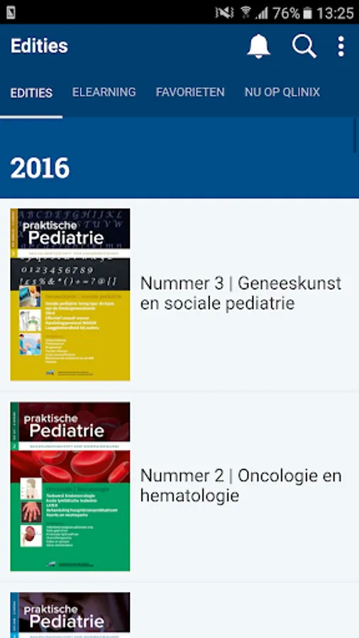 Read the full magazine also on your phone or tablet, some remarkable articles with your colleagues or your social media and highlight articles to read them again later. In addition, the entire archive of Practical Pediatrics searchable and you can access your personal training file directly. From here you can directly start the elearning.