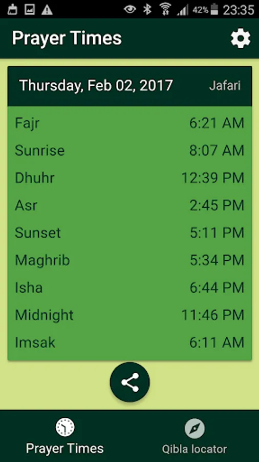 Muslim Prayer Times is an App you can use it to know all times that Muslim may need daily like five time praying, sunrise, sunset, midnight, and imsak time working Offline no need for internet connection to get this App working, all you need to enable the location services in setting and the App will do the job, also this App has very accurate and easy to use Qibla locator working offline as well. With Muslim Prayer App you can change the option method in setting to specify your Muslim school you follow and that will give you all times according to your choice accurately. As we said this App working completely offline however if there is available internet connection the App will give you your current address you are in.