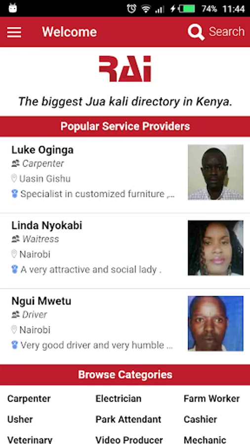 qualifications but are highly skilled in the Jua Kali Sector. It makes it easy for Kenyans with special skills to access employers by advertising their skills on our website through a simple registration process.