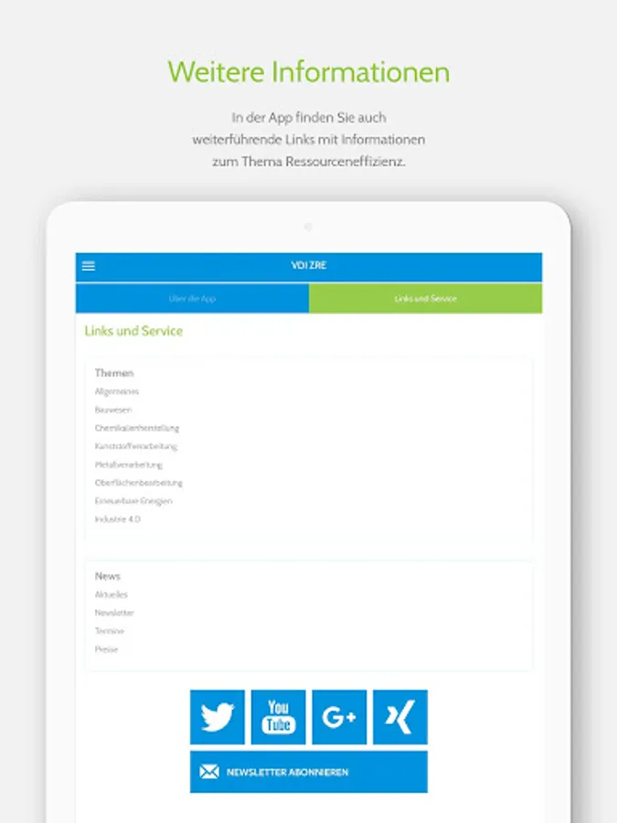 After installation, the app can also be used without an Internet connection. The resource checks are also available free of charge on the VDI ZRE website www.ressource-deutschland.de.
