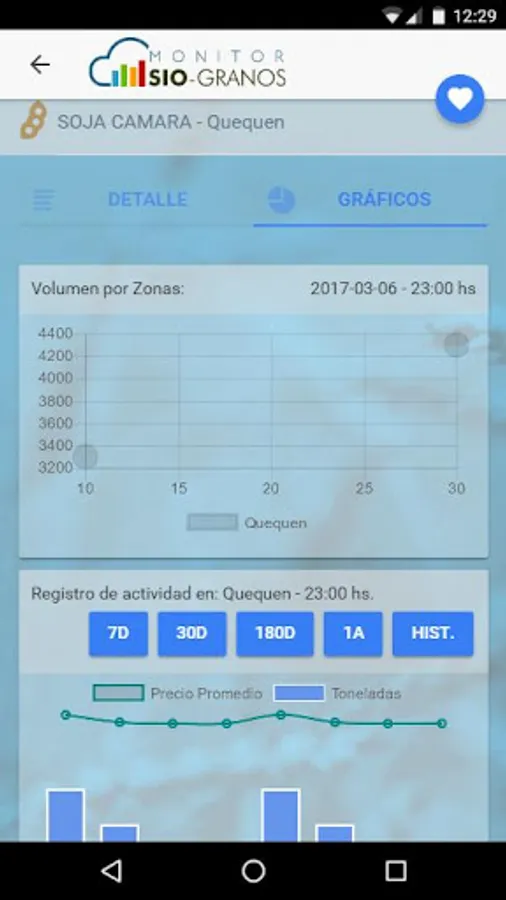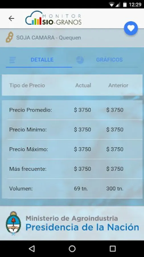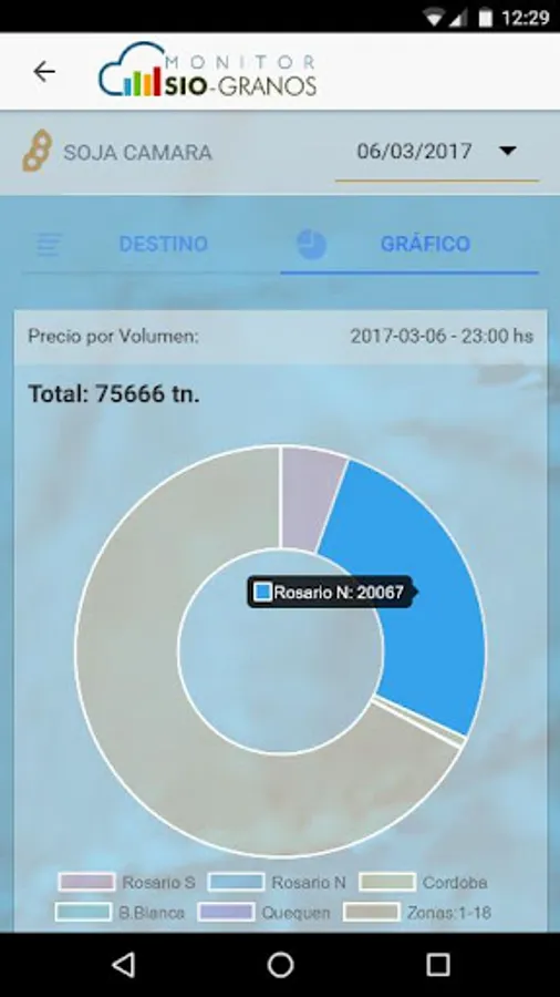 The portal will have information regarding prices, volumes and areas. The average value, calculated by a weighted volume of all operations declared by product under the above conditions, for each of the areas or a reference port. To this different graphics that allow better visualization of operations that are declared they are added.