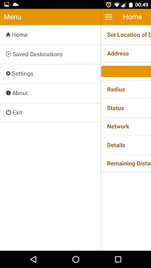 Upon turning on the tracker, application will smartly keep a track on your device's current location and notifies you once you are close enough to the destination. This application runs in background if you have minimized the application. In this app, your device's back button will not close the application. However, if you want to close the application, you can select exit option on left menu.