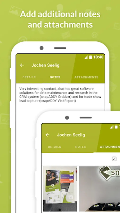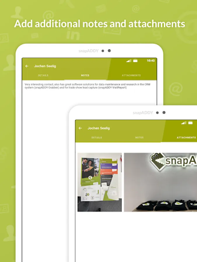 All information captured by snapADDY CardScanner including notes and profile picture can be saved to your contacts. So you always have your captured business cards at hand in your smartphone.