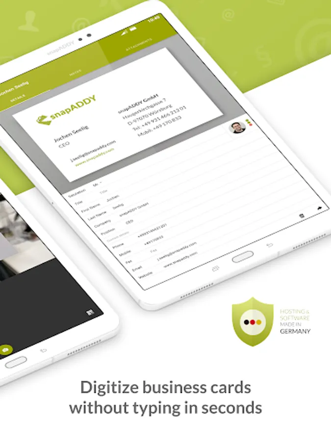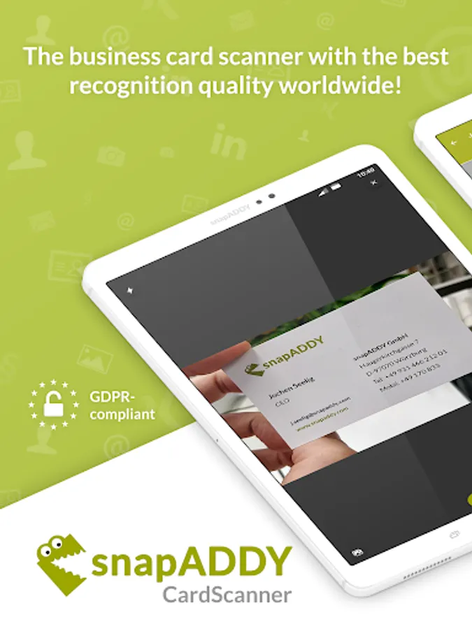 The snapADDY CardScanner is the free business card scanner with the world's best recognition quality for iPhone and iPad!