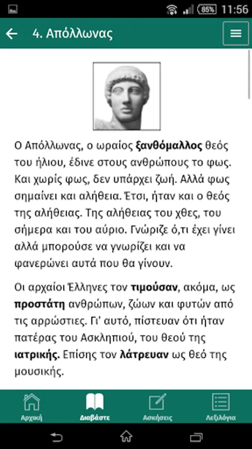 Mythology in Easy Greek Apps are language learning apps based on simplified adaptations of well known ancient myths selected from Greek mythology. They have been written by experienced Greek language teachers in the simplest possible language and are accompanied by related exercises. The apps aim at improving the learner’s reading comprehension skills and building up their vocabulary. The narratives may be read and further exploited by the learner with or without the help of a teacher or a dictionary. There are three Mythology app titles all written for learning Stage 3.