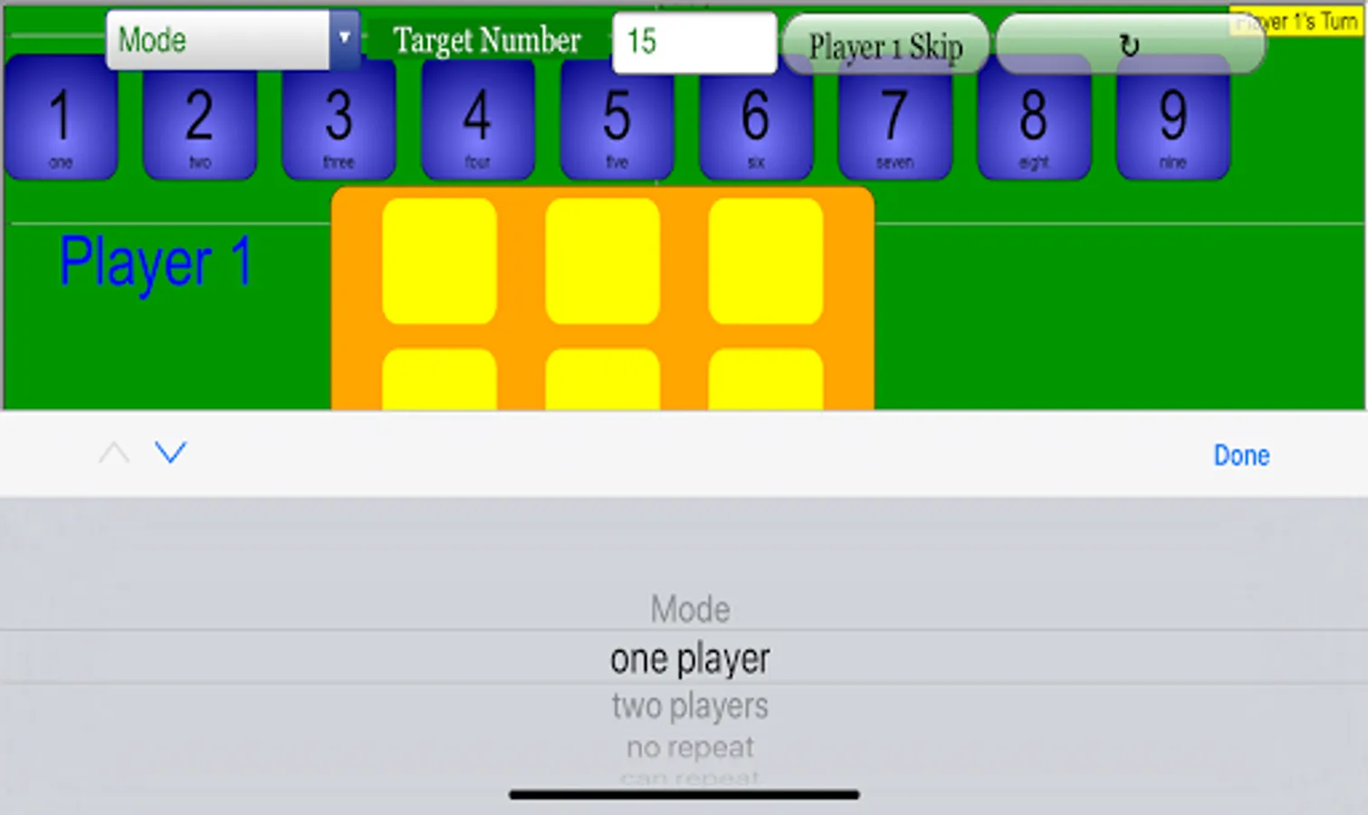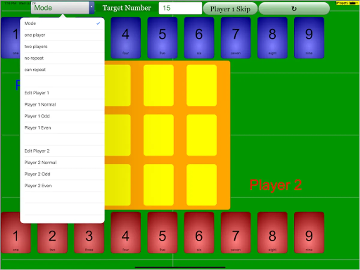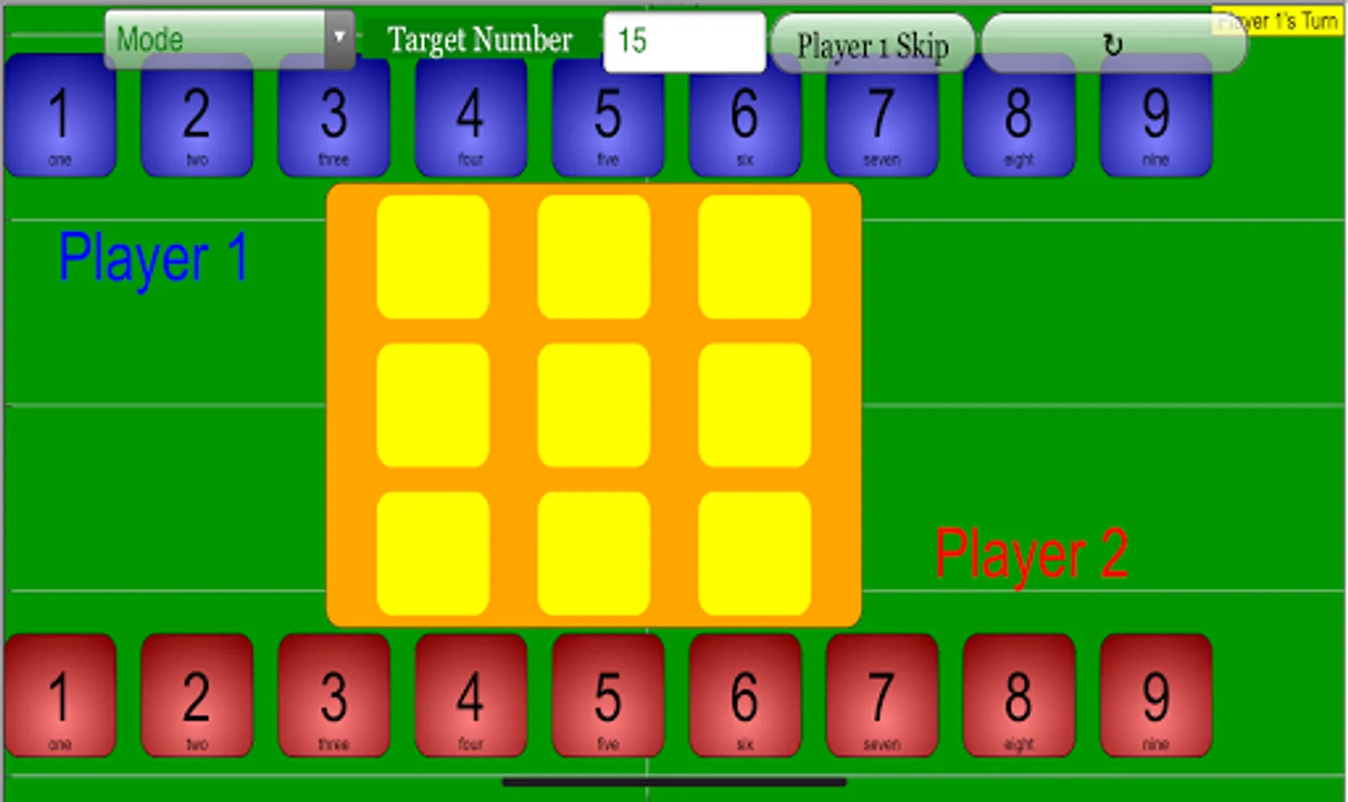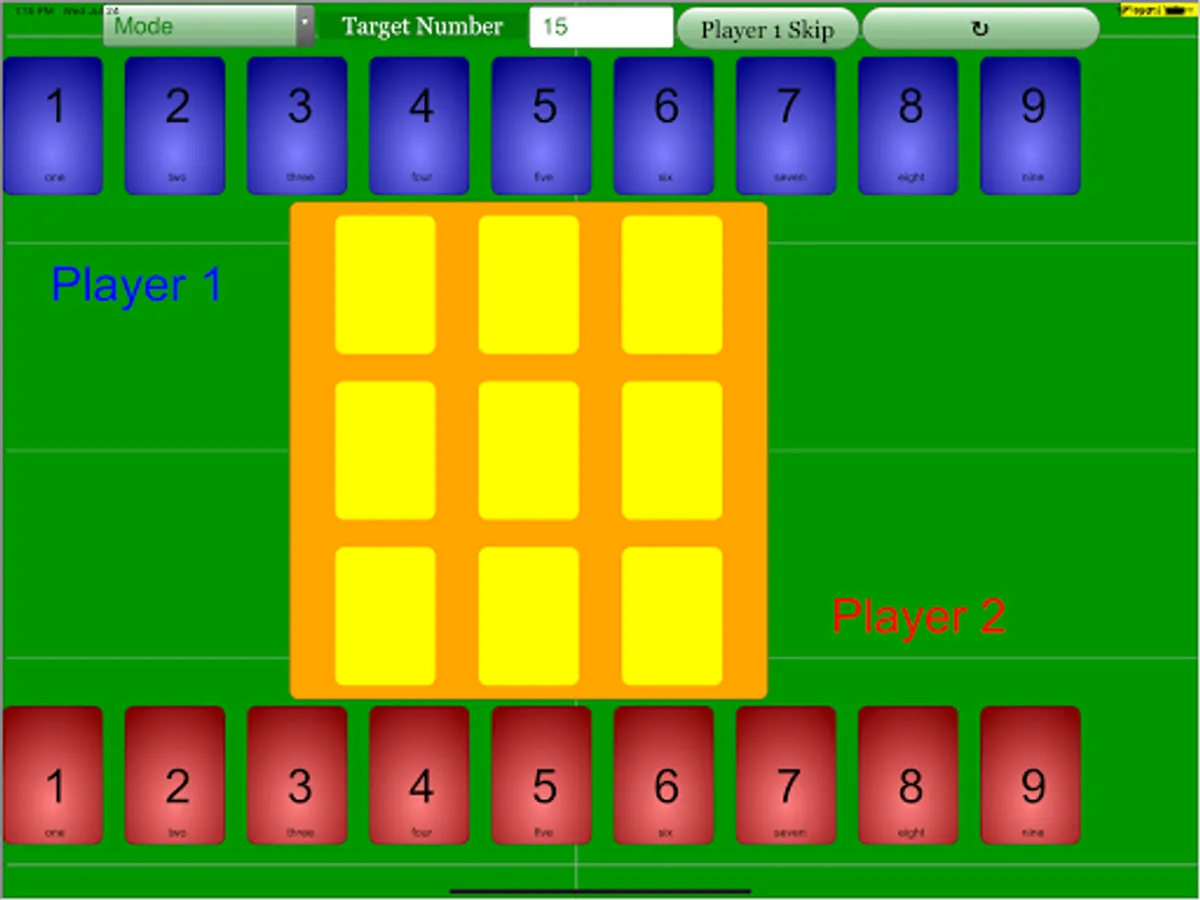 (Player 1 reaching target number 15)