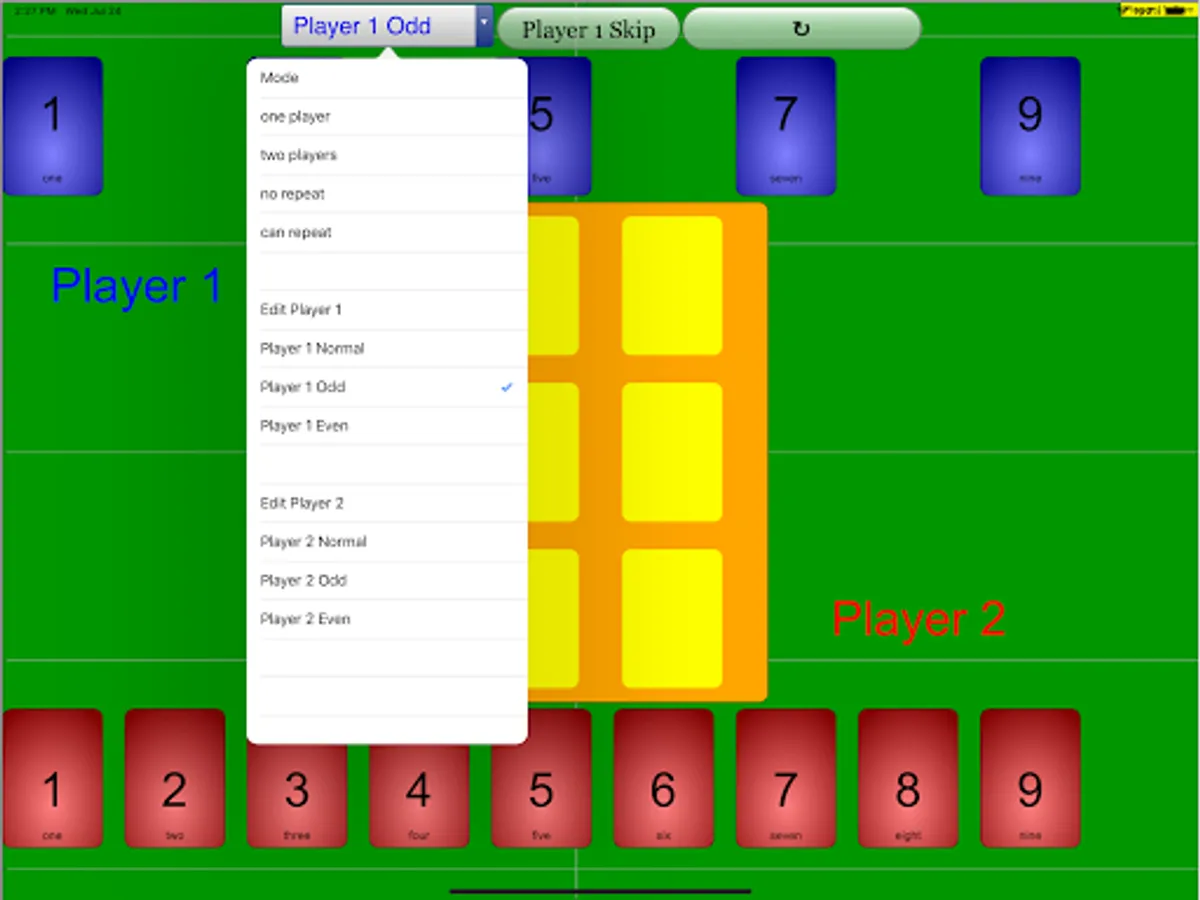 Player 1 will begin first by dragging the blue cards to the respective cell.