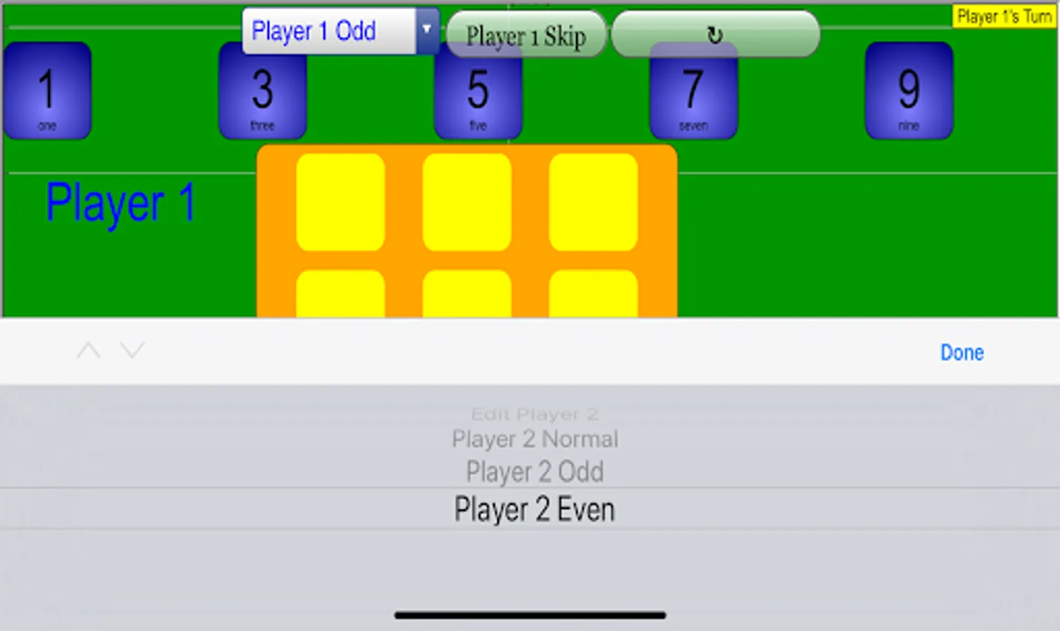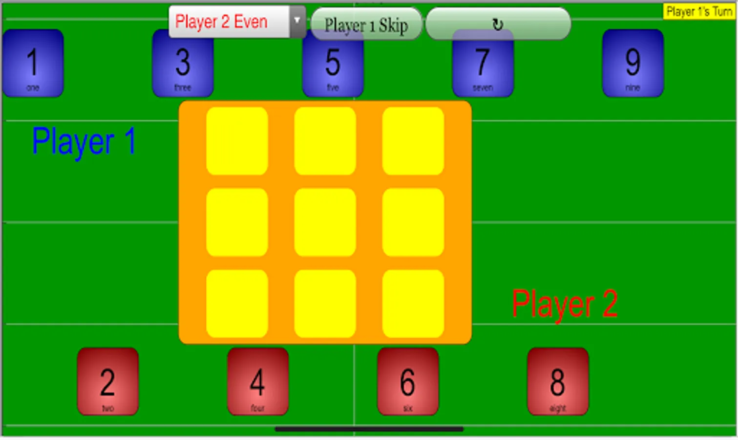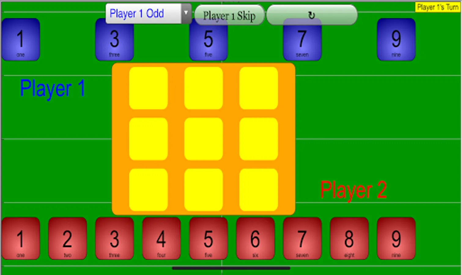 Note that if Player 2 attempts to place their 6 during Player 1's Turn, a pop up will occur.