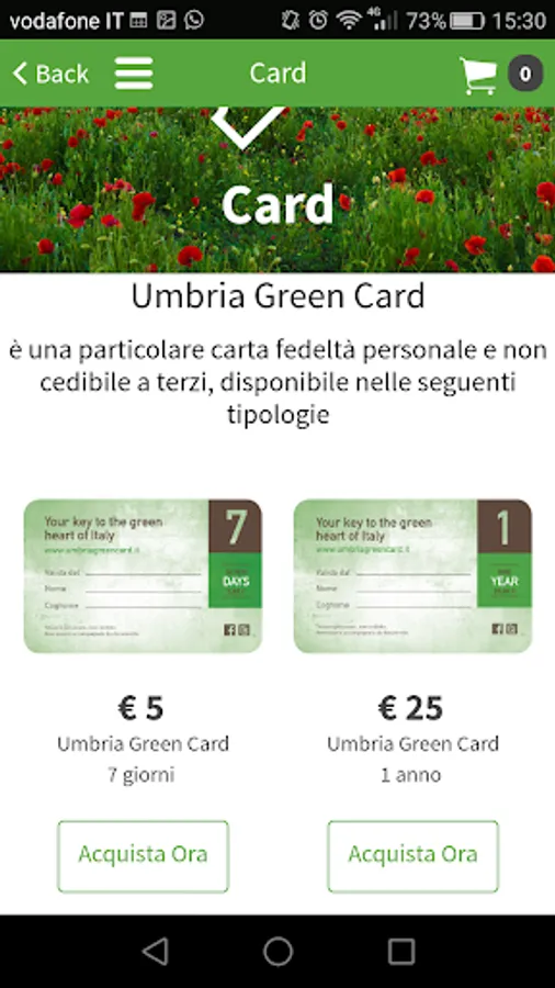 Green Umbria, all of Umbria in an App! The application for living tourism "green" Umbria Green Card, a project born from the idea of developing in Umbria a form of sustainable tourism, which offers visitors the opportunity to know and experience the region with particular focus on the environment, and allows them to attract numerous services at a price facilitated through the use of a dedicated card.
