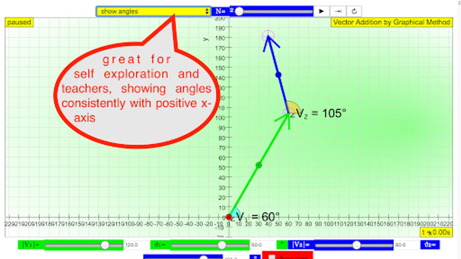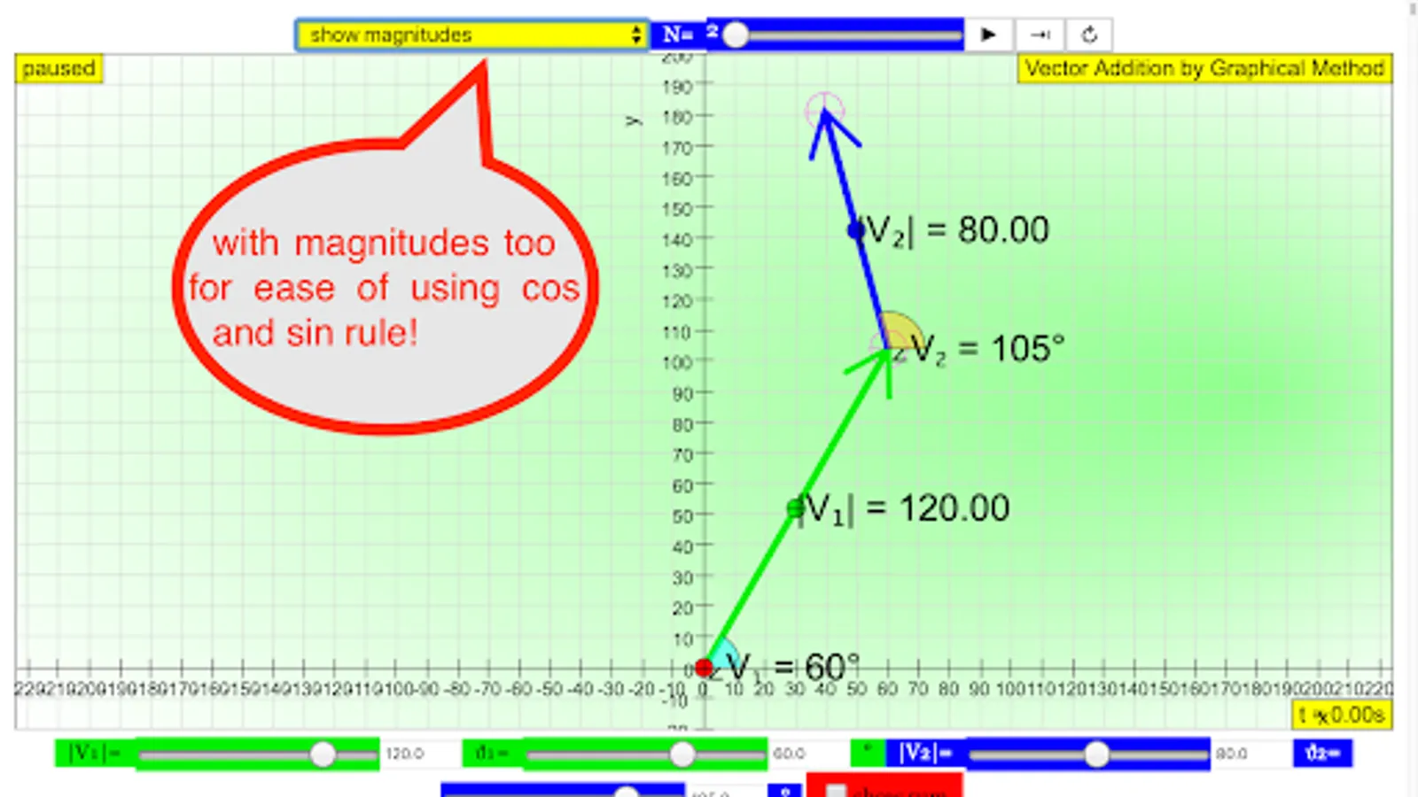 Take an example from your usual word problem and take a picture of it and try to use the simulation to represent the word problem. After you are done, the simulation should be able to calculate as well as draw the resultant vector. send your completed picture to weelookang@gmail.com to be included as an example in this simulation-model!
