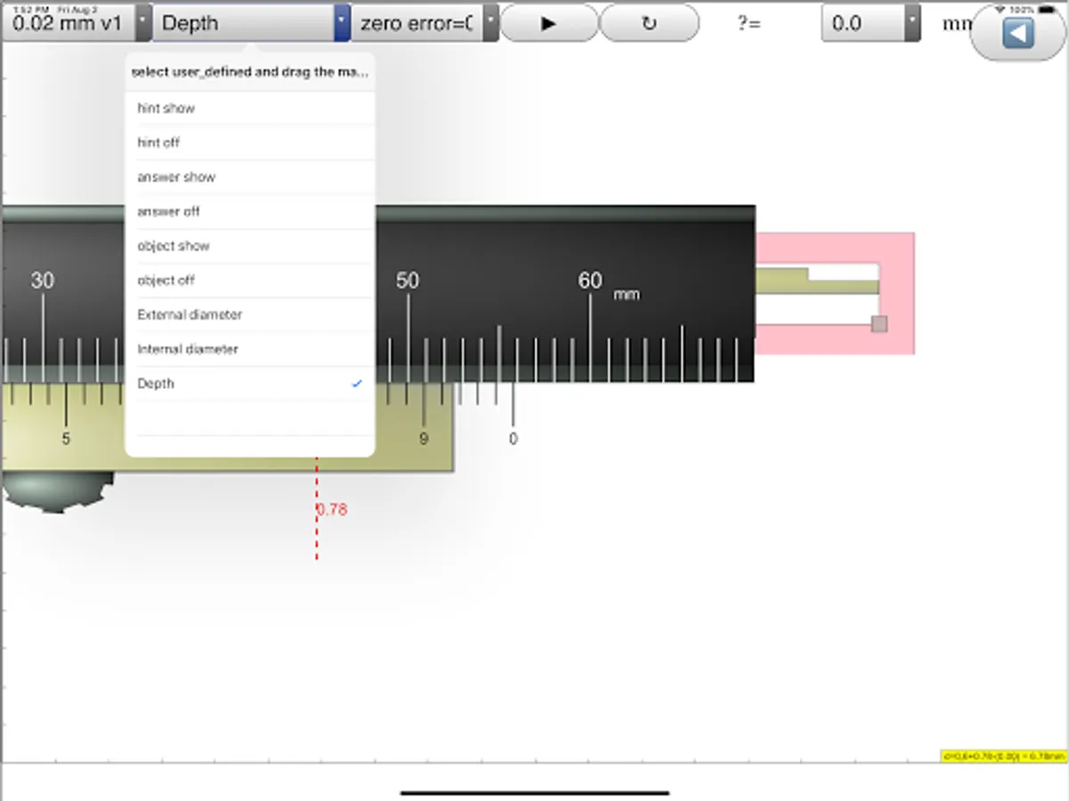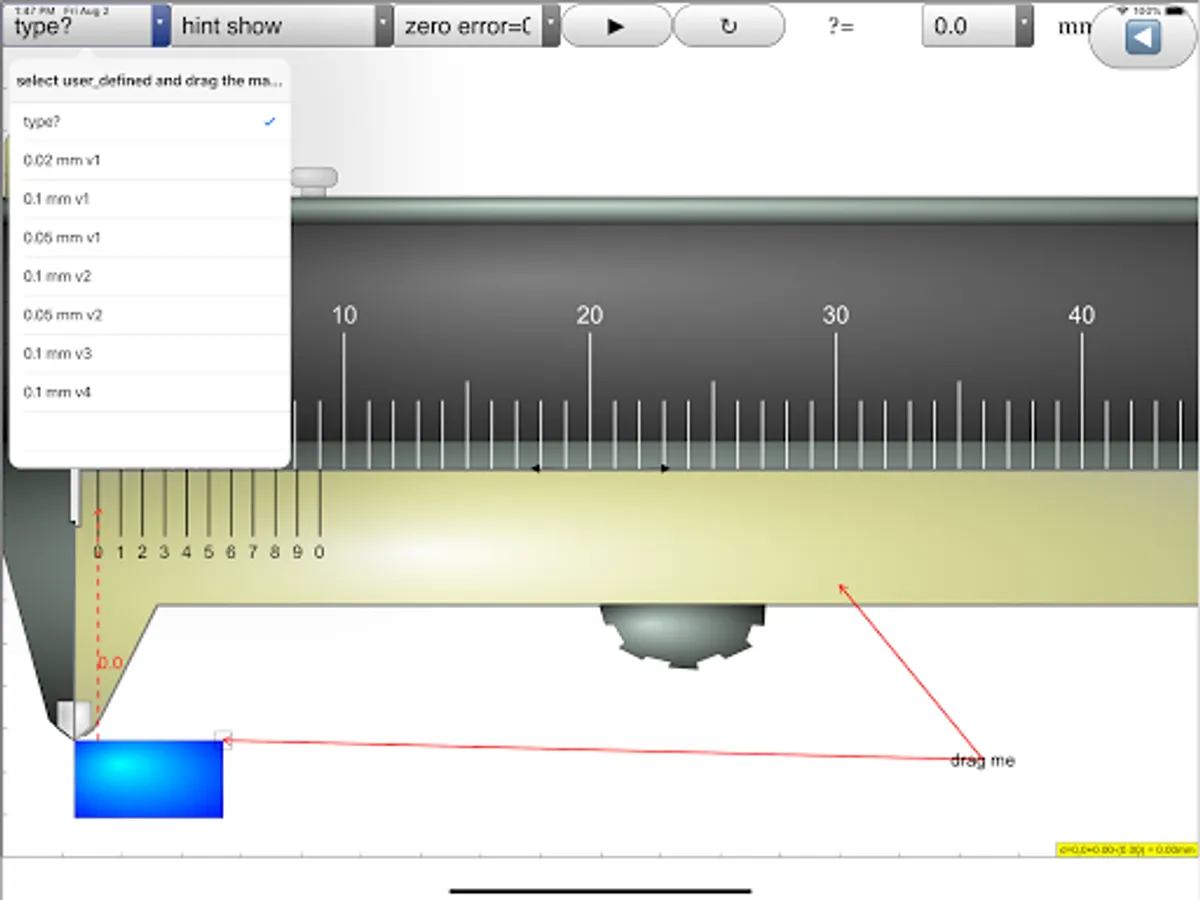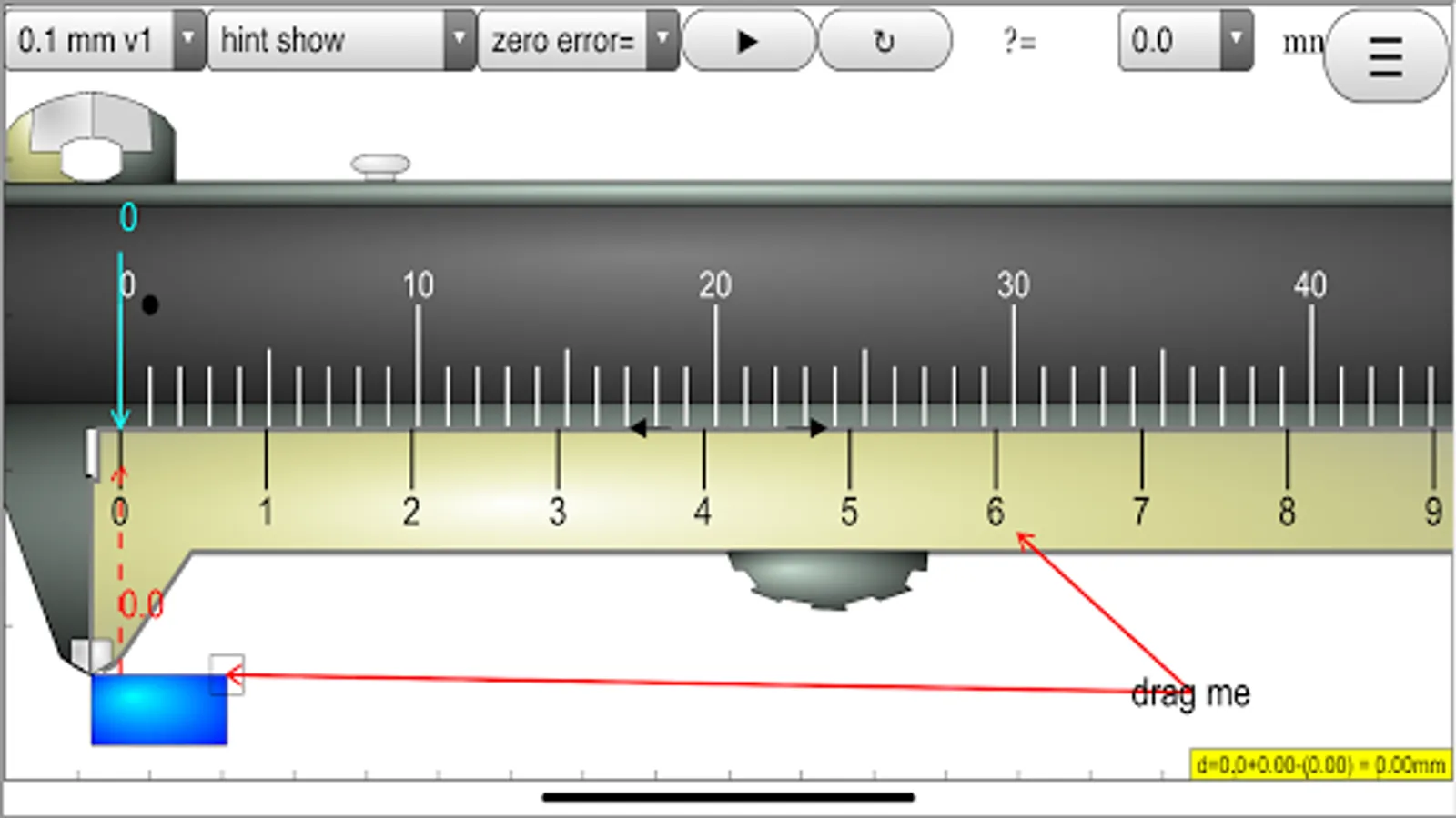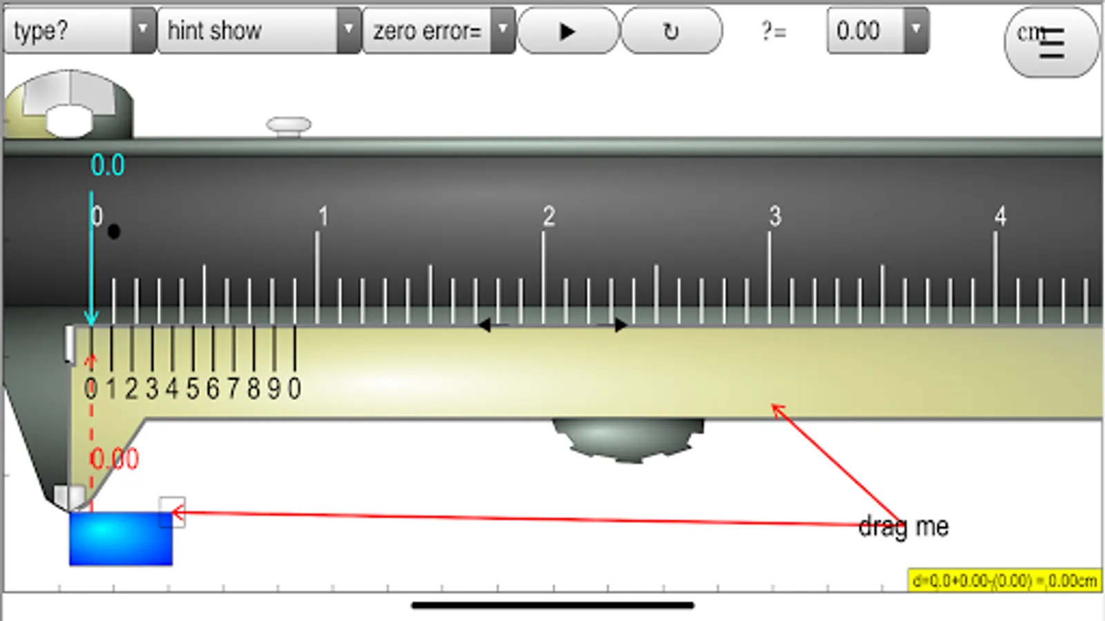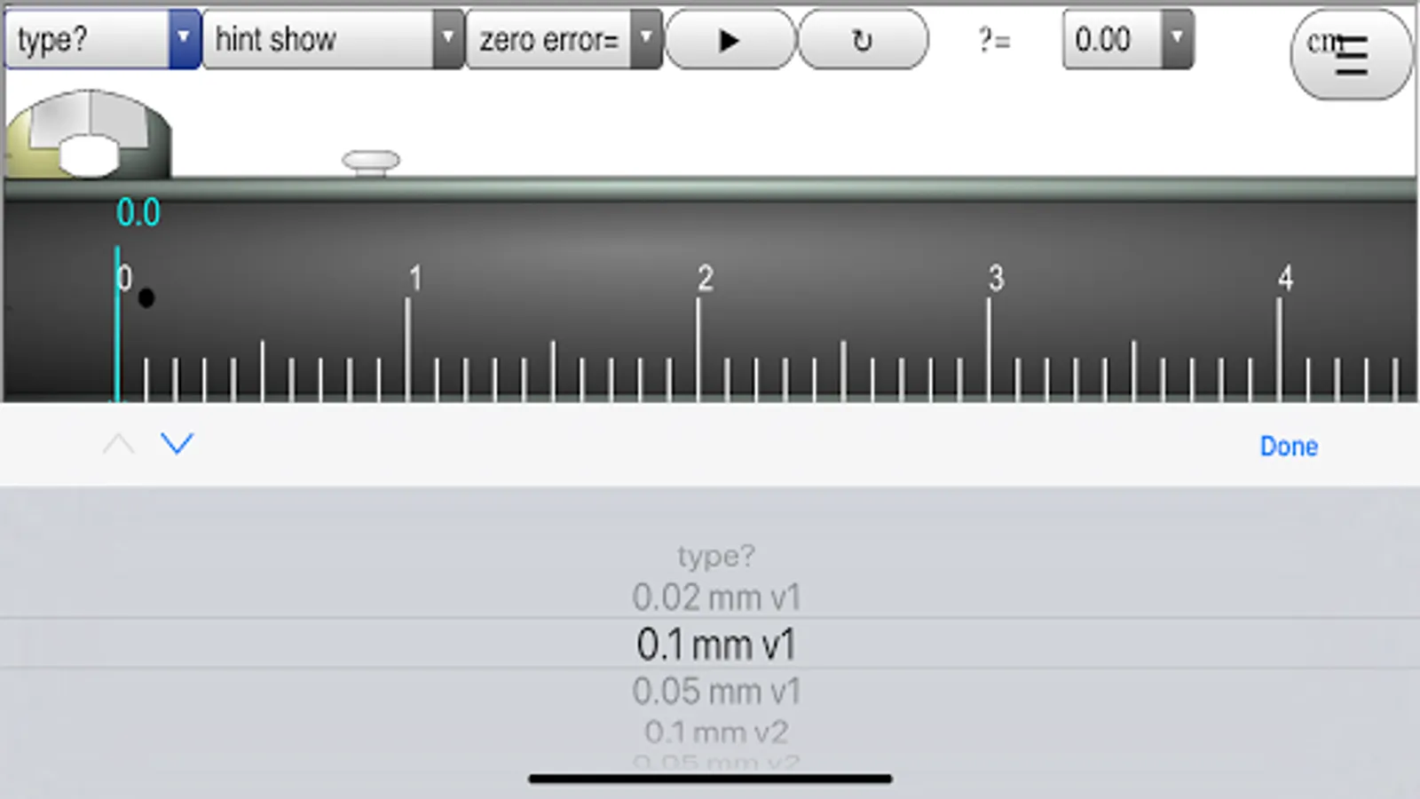drop down menu of the various common vernier scales for sense making and additional testing out by learners their ideas of how vernier works.