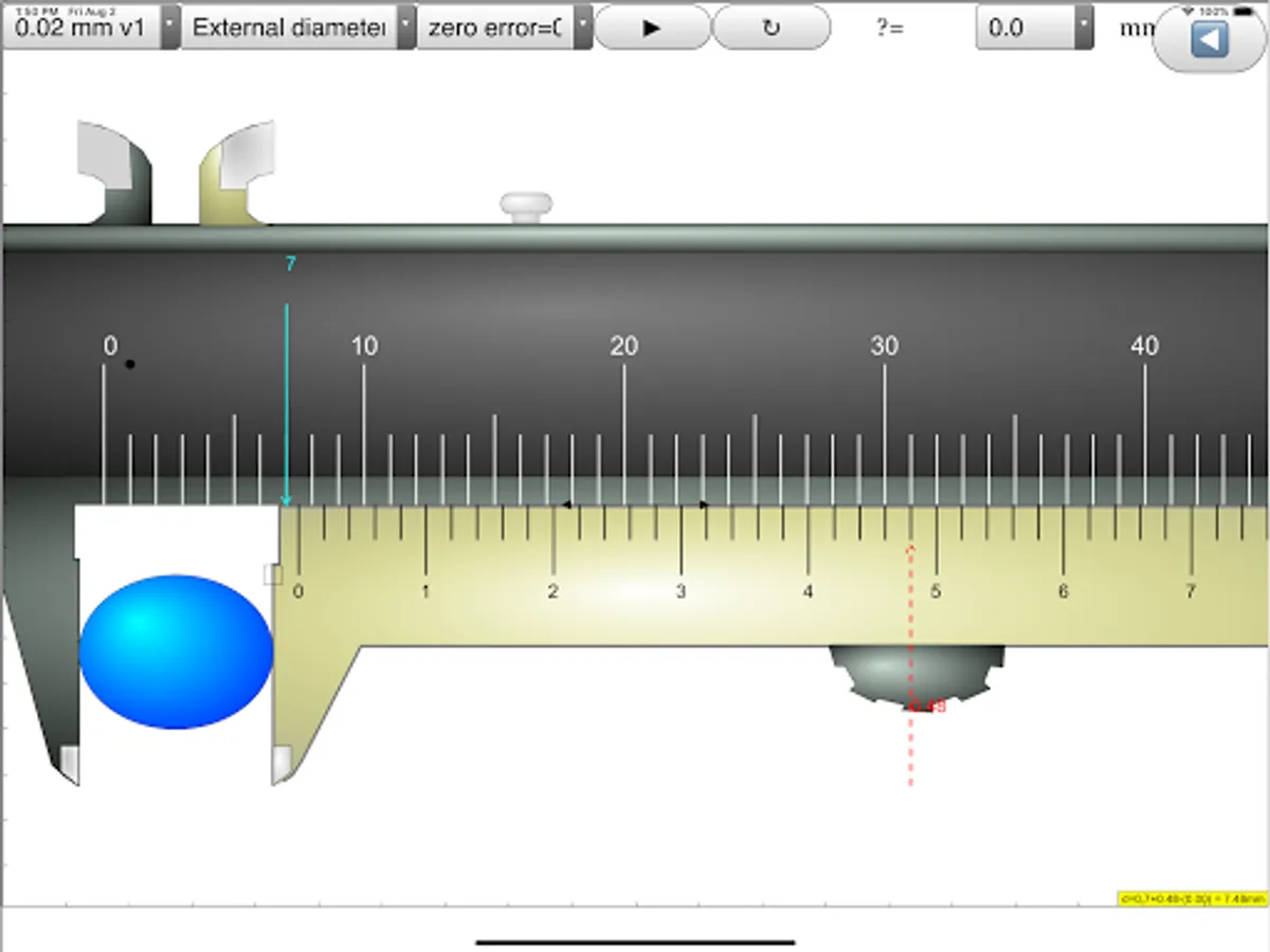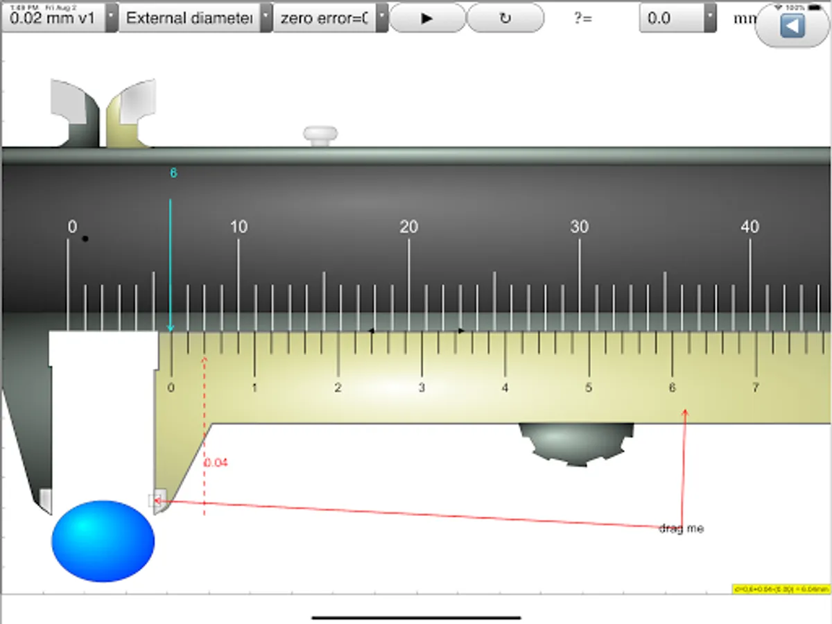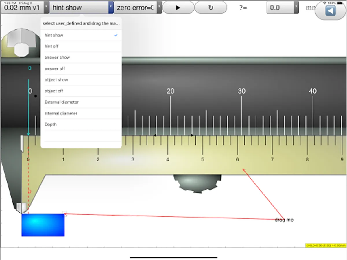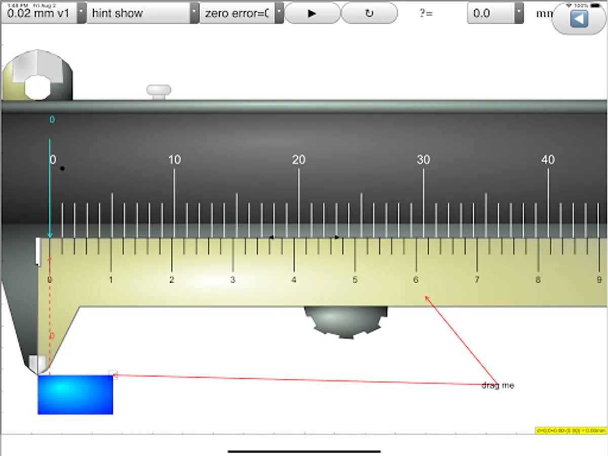 an object (Blue) for the internal jaws to measure width of an object with slider to control width of the object and simple drag action to control position of object.