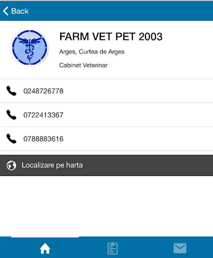 Aplicatia Cabinet Veterinar va prezinta cabinetele de veterinari din Romania. Va punem in contact cu cate un cabinet veterinar din majoritatea oraselor unde profesează oameni dedicati meseriei lor si cu experienta.Va propunem 4 sectiuni importante: Cabinet Veterinar, Farmacie Veterinara, Frizerie Coafura Animale, Magazin de Animale.Credem in profesionalism si grija pentru animale.Credem in profesionalism si grija pentru animale.Aplicatia functioneaza in regim de gazduire informatica si ca atare, in mod obiectiv, nu poate fi responsabil pentru continutul materialelor publicate ori a efectelor ce le-ar putea produce in plan public.