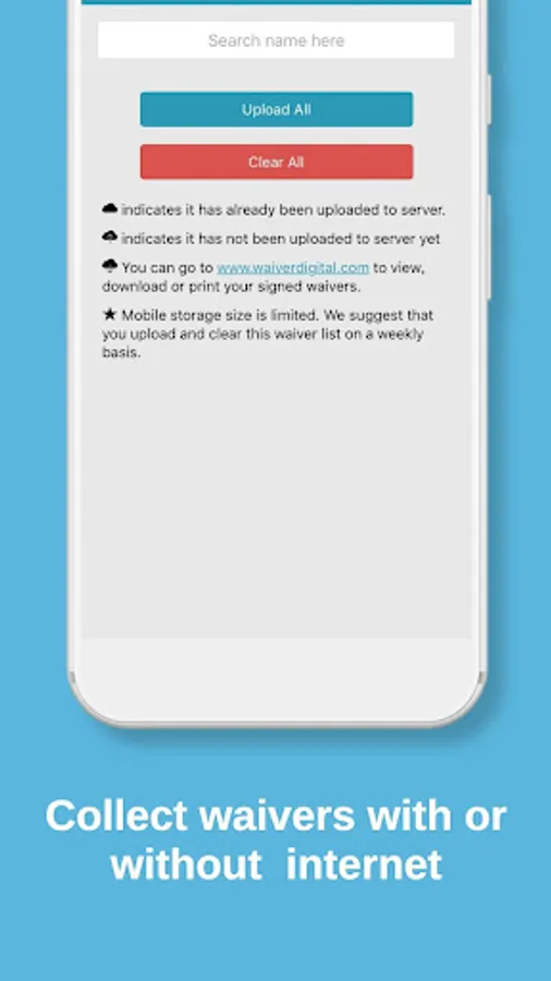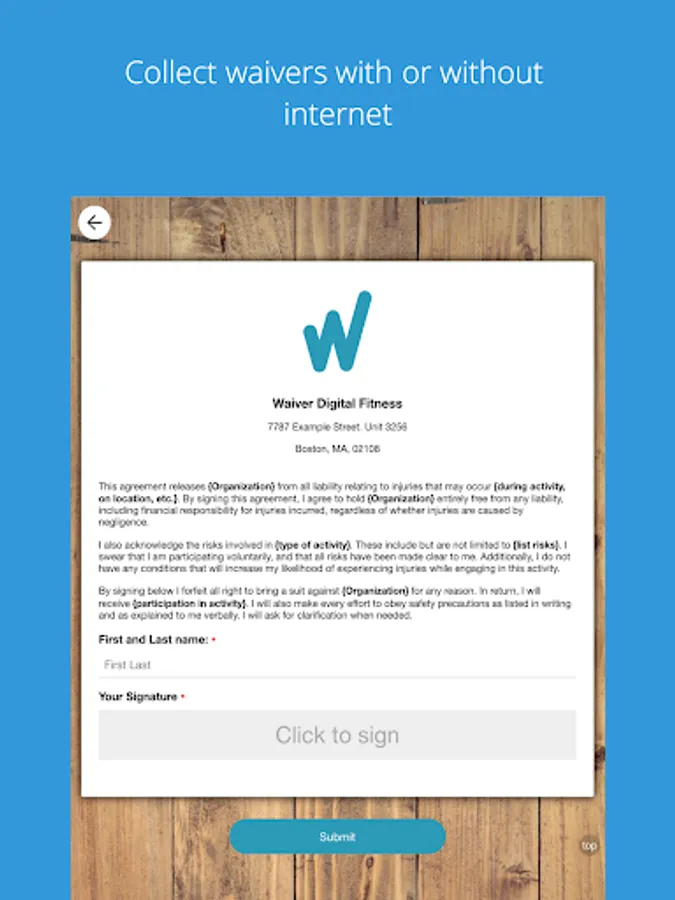 - Offline mode. Turn on the airplane mode on your device and start to collect waivers without internet.