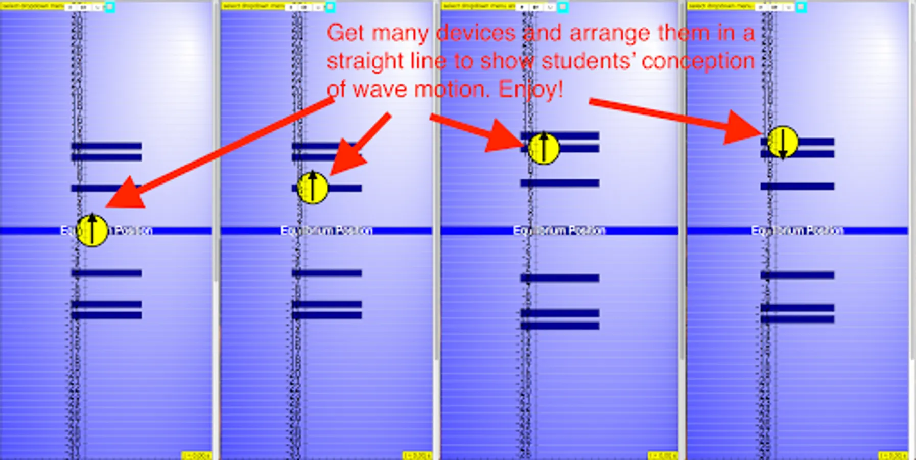 Concepts illustrated in the simulations include student hands-on tool kit to make waves using many devices line up.