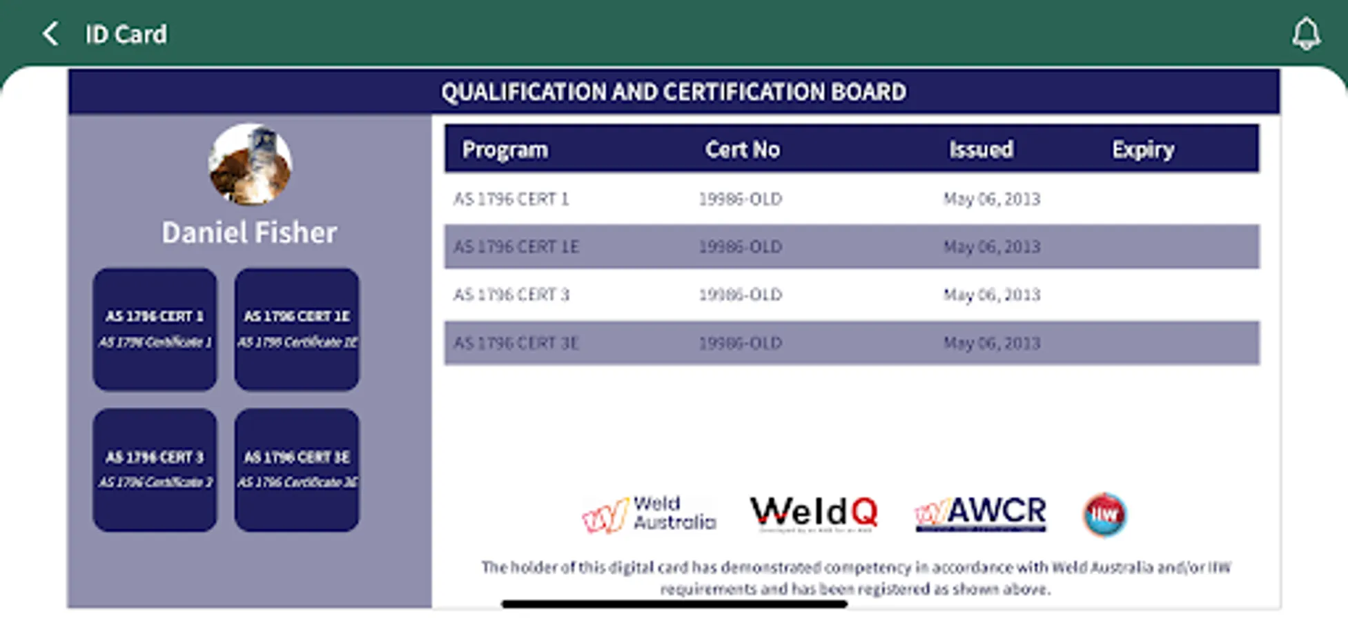 The WeldQ mobile app is for the registered users of the WeldQ platform/website. WeldQ is available for welders, inspectors, supervisors, and coordinators to manage their qualifications and certifications, and to use as a digital ID card or wallet. The WeldQ app can be used to view your digital Welder/Supervisor/Certification cards, awarded diplomas & certificates, status/results of applications, and WeldQ emails. With the WeldQ app you can pay your examination fees and manage welder qualification confirmations. To apply and update your WeldQ account must be done on the WWW platform on your computer as well as initial applications. WeldQ is connected to the Australian Welder Certification Register (AWCR) which is managed by Weld Australia.
