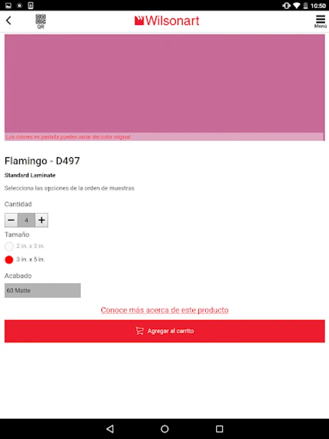 Designed to interact with our Wall & Swatch Display. The “Wilsonart® Textures” App allows you to request additional samples, save favorites, view product specifications, and much more.