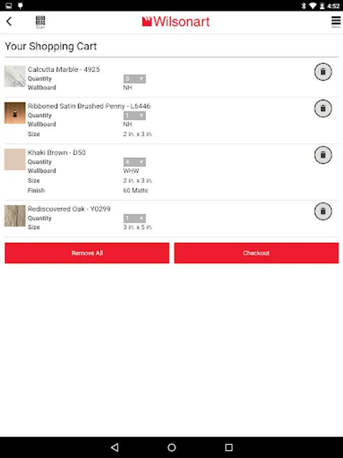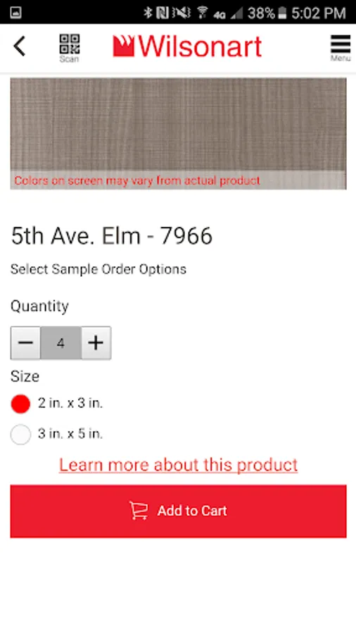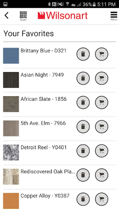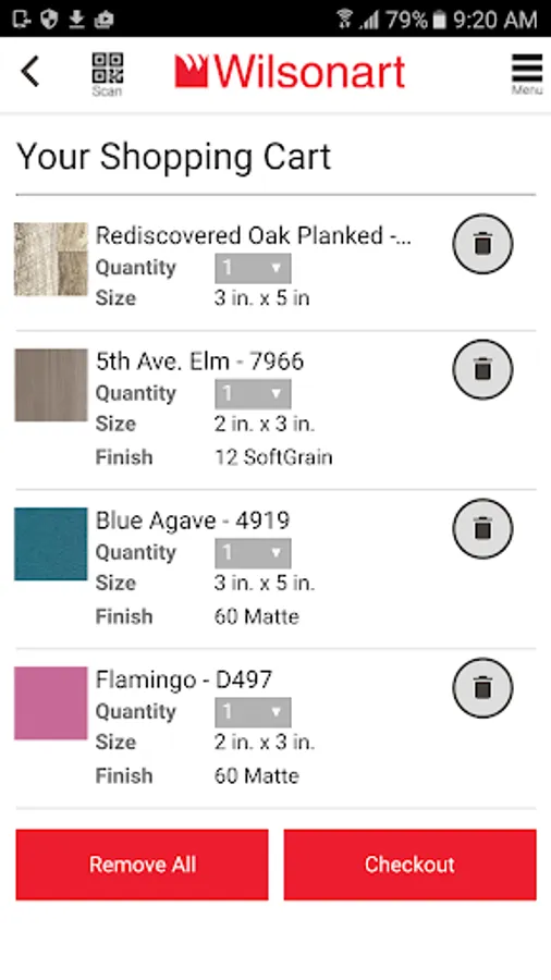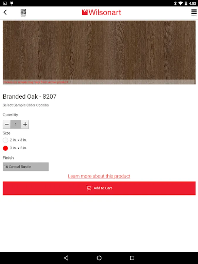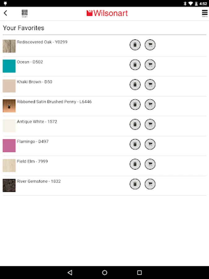 Scan—Use the camera on your phone to scan the QR codes found on the back of samples and wallboards.