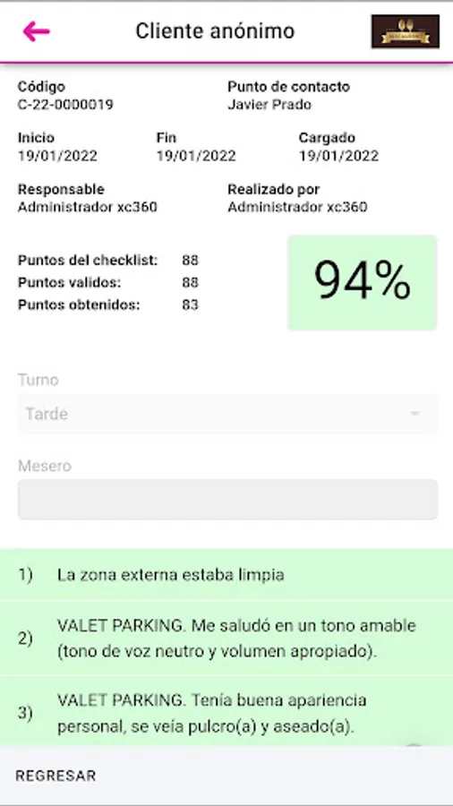 - Customer incognito (mystery shopper), observation and any kind of check list with results online and sending immediate tasks to negative findings.